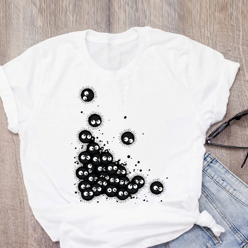 Милая футболка с изображением пылесоса Тоторо, кавайная Женская Повседневная футболка с коротким рукавом в стиле Харадзюку, летние футболки для девочек, женские футболки в японском аниме