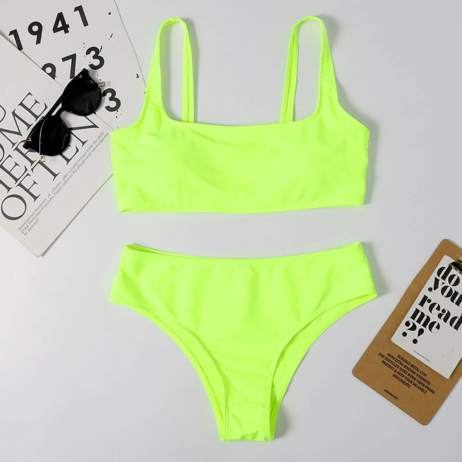 Купальник женский спортивный однотонный, комплект для плавания с чашками пуш-ап и лямкой через шею, Топ 2021