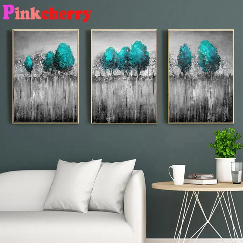 5D Diy алмазная живопись 3 шт. зеленое растение для ландшафта Триптих Алмазная вышивка мозаика полная квадратная круглая дрель