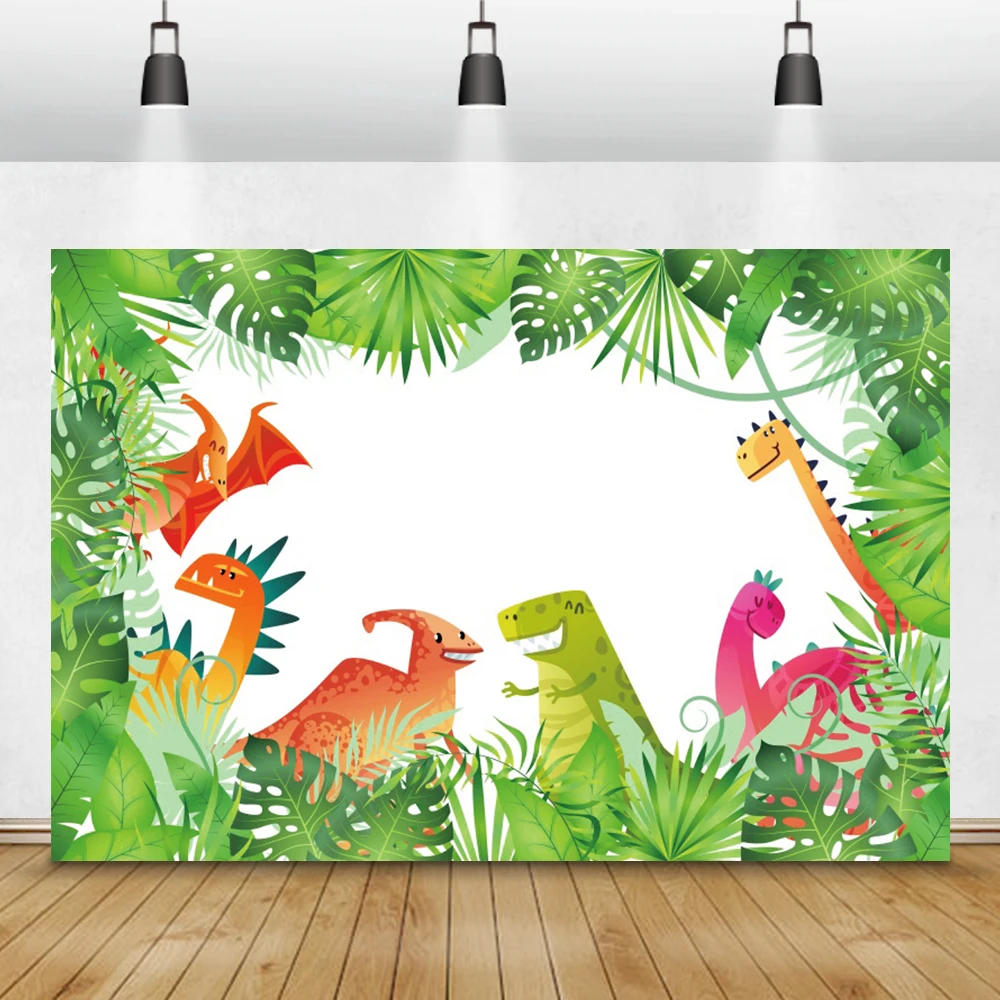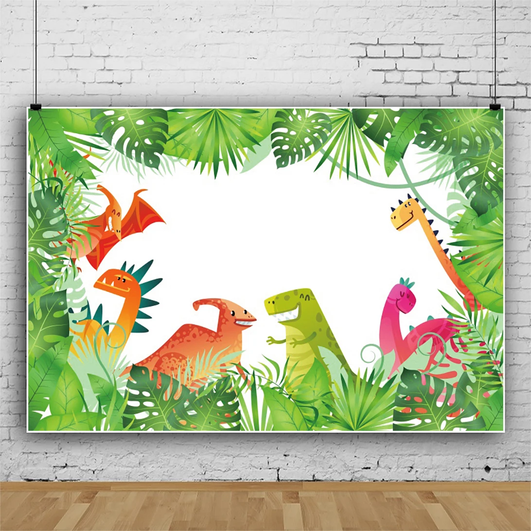 Laeacco динозавр вечерние для фотосъемки с изображением зеленых листьев джунгли Животные для фотосъемки по случаю Дня Рождения новорожденных Фото Фоны Фотофон для студийной съемки