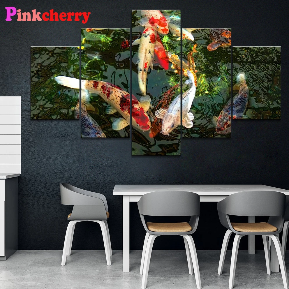 Алмазная живопись, 5 панелей, искусство, китайский пейзаж кои 5D, сделай сам, полная вышивка, мозаика, вышивка крестиком, Настенный декор