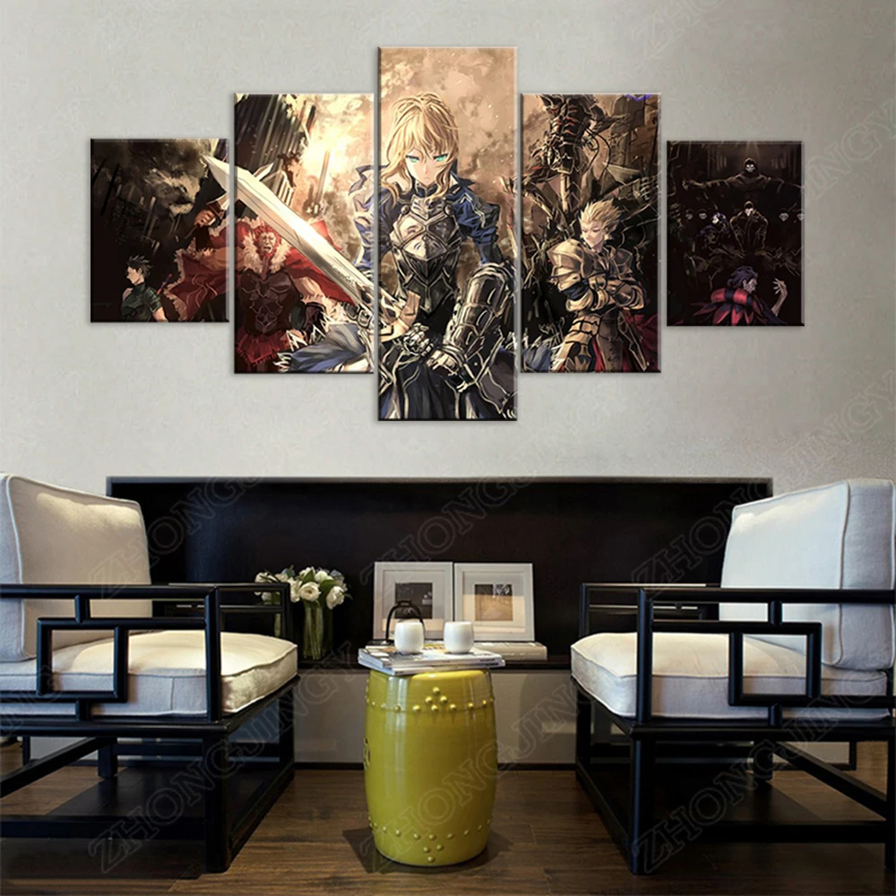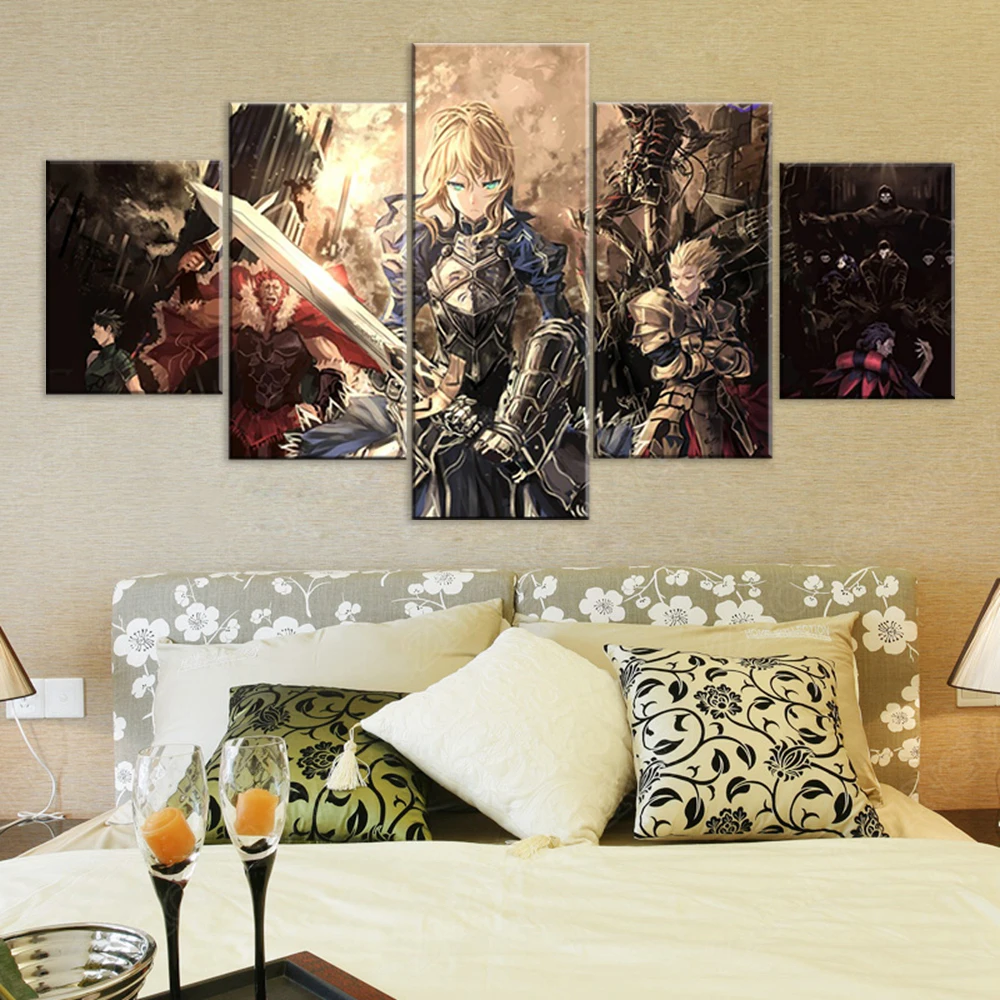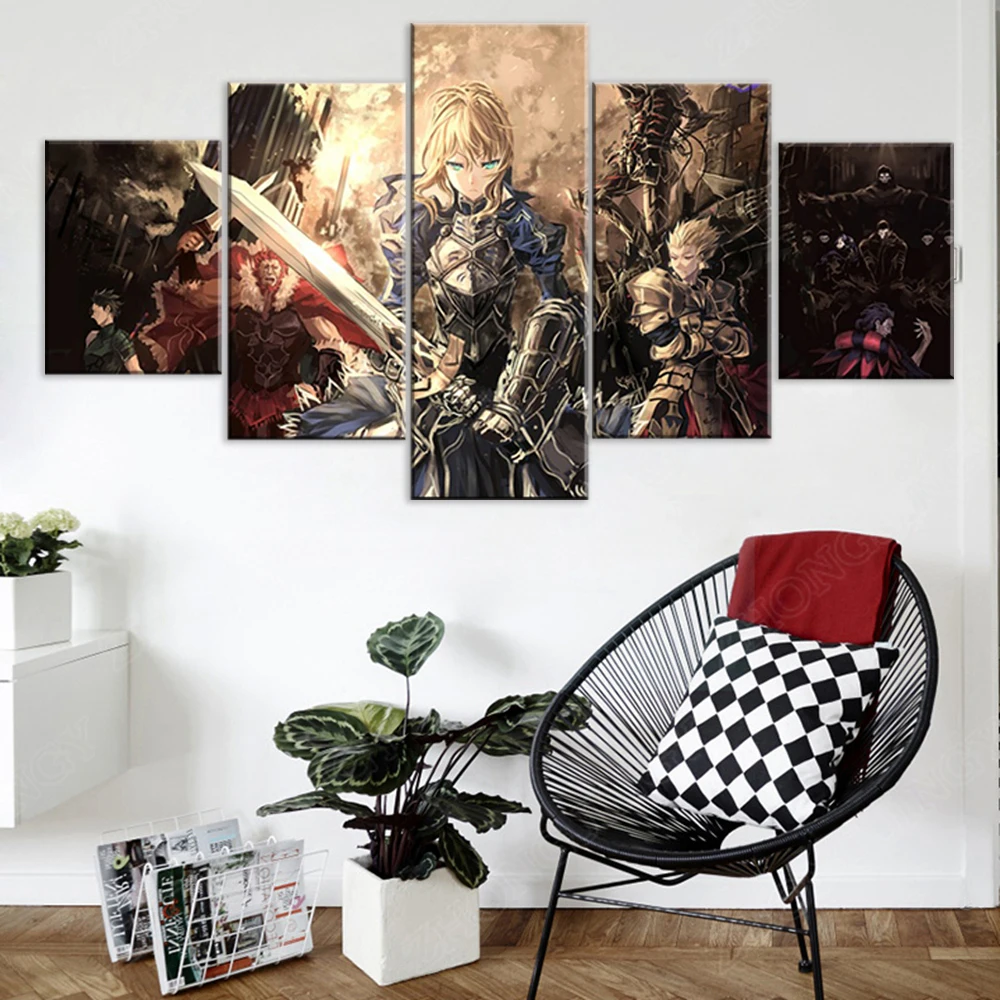 Картина на холсте 5 шт., настенное искусство аниме, Fate Stay Night, плакат, украшение для дома, картины, гостиная, модульная структура