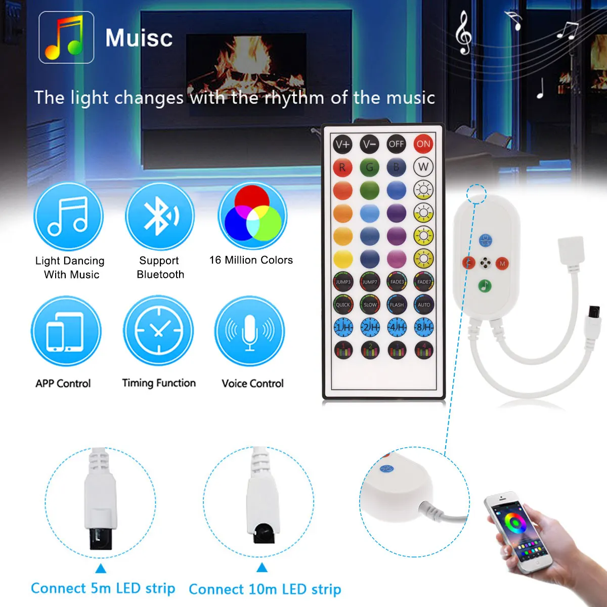 20 метров Bluetooth Светодиодная лента s 5050 5 м 10 м 15 м Гибкий неоновый светильник ТВ светильник Светка Свет декор для комнаты 12 В гирлянда светодиодный ные ленты свет