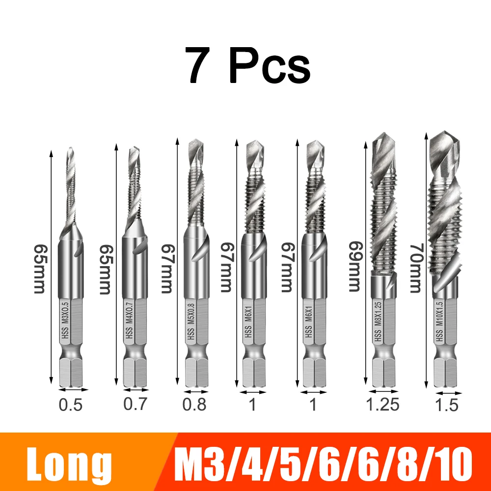 67 шт. M3 M4 M5 M6 M8 M10 Набор бит для резьбы метрическое сверло под Метчик из быстрорежущей стали с шестигранным хвостовиком, ручной инструмент с титановым покрытием составной кран