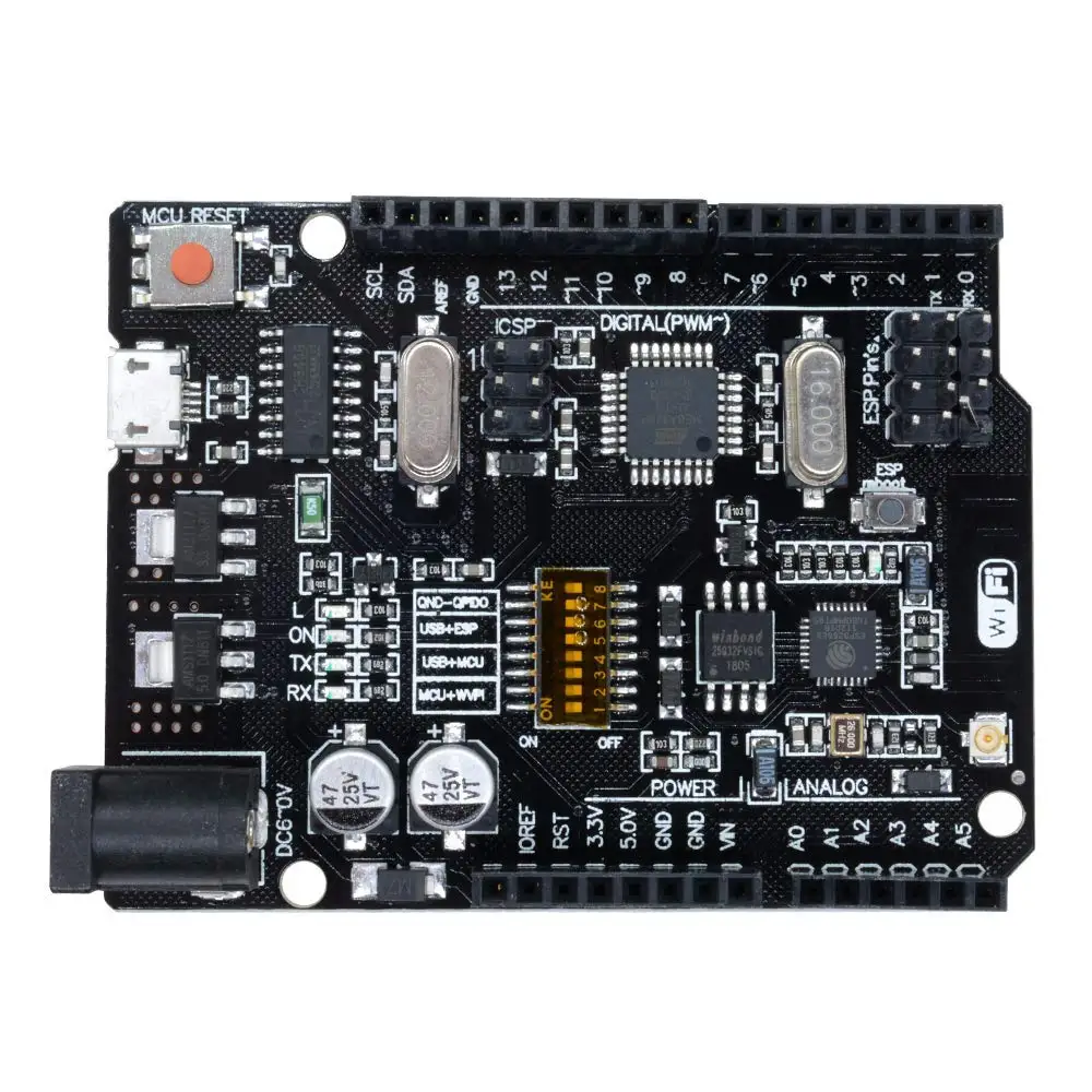 Набор для сборки UNO + WiFi R3 ATmega328P + ESP8266 (память 32 Мб) USB-TTL CH340G для Arduino Uno NodeMCU WeMos ESP8266