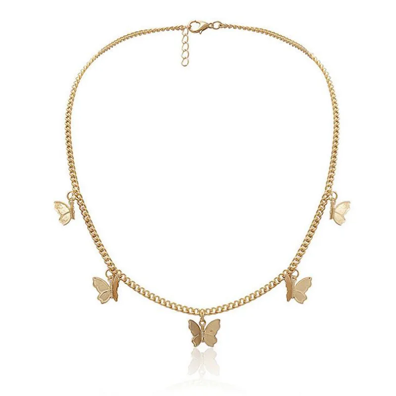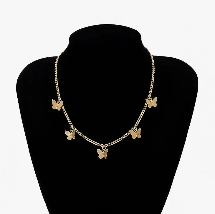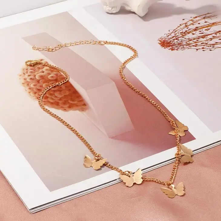 Ожерелье из сплава с золотой бабочкой женское ожерелье с подвеской-...