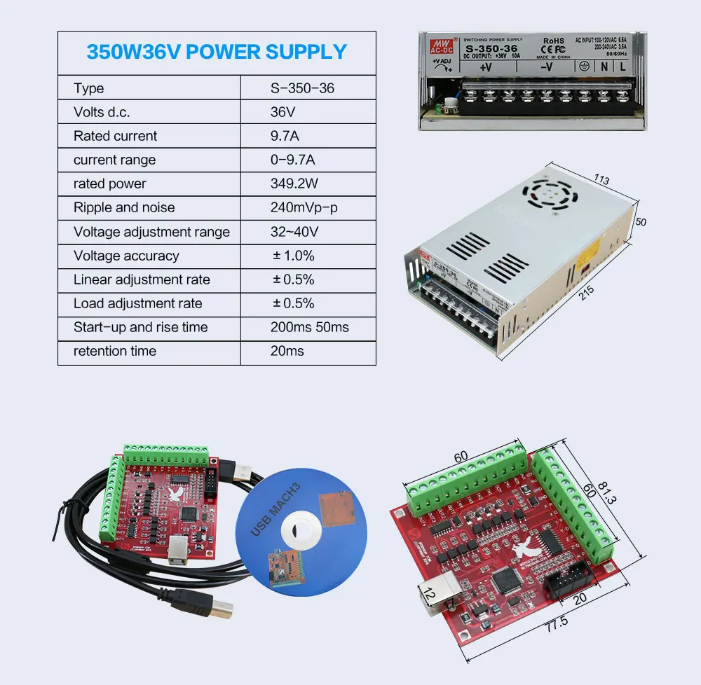 Драйвер шагового двигателя DM542, 3 шт., 3 Нм NEMA23, блок питания ...