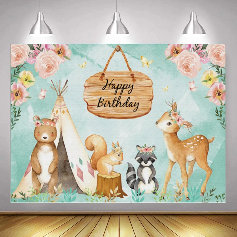 Фон для фотосъемки с изображением оленя белки медведя животных цветов для дня рождения девочки