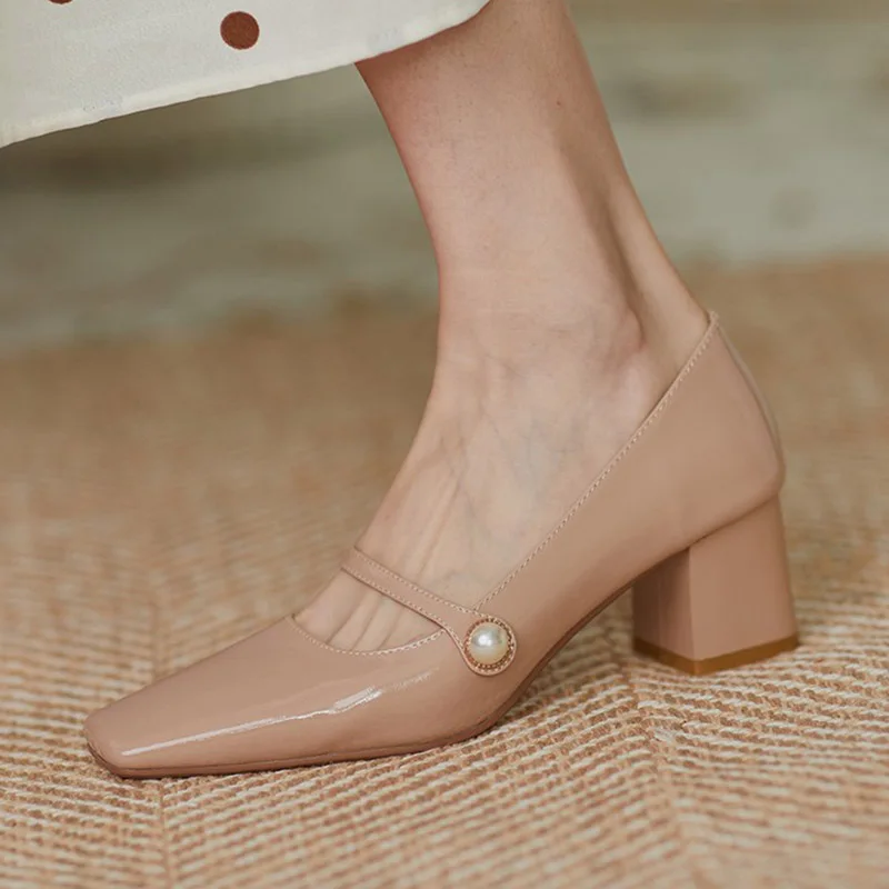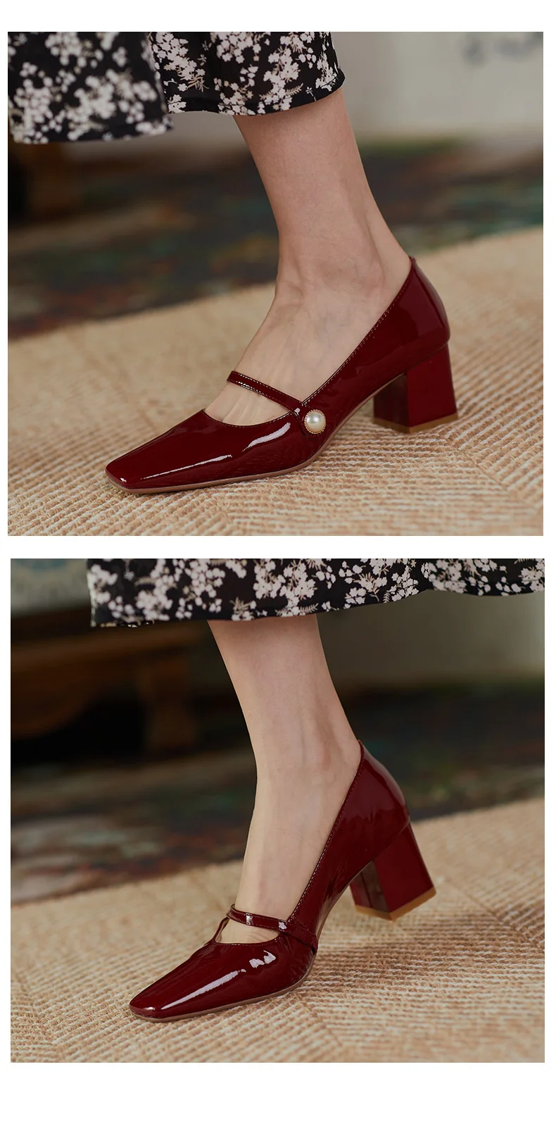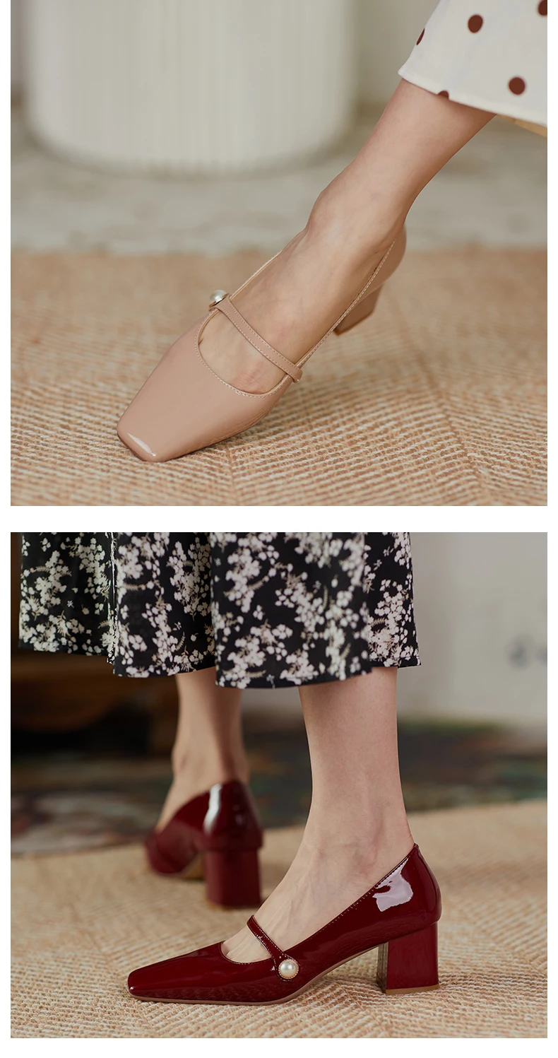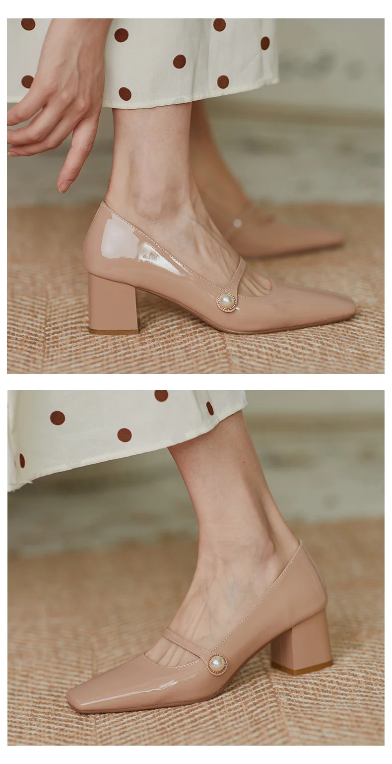 Женские туфли-лодочки из лакированной кожи, демисезонные туфли с жемчугом, с квадратным носком, модель 9023N
