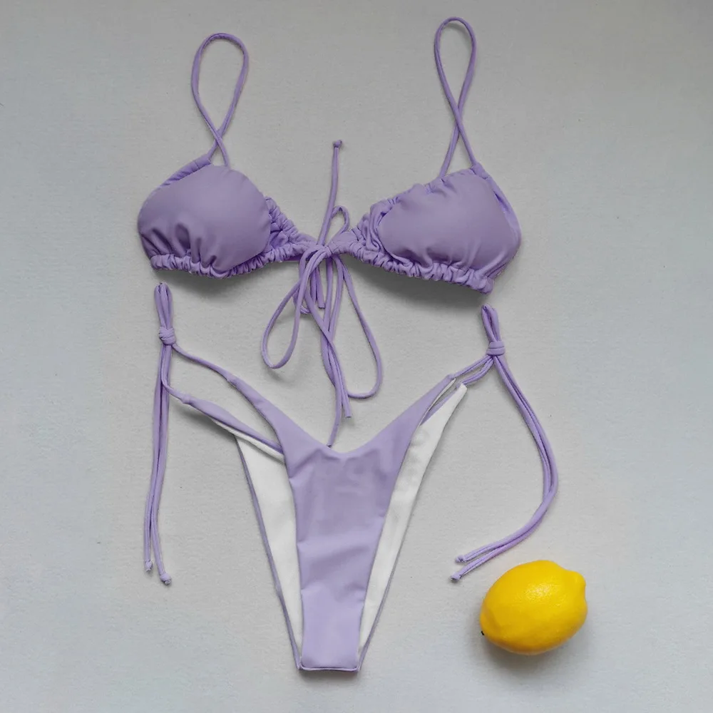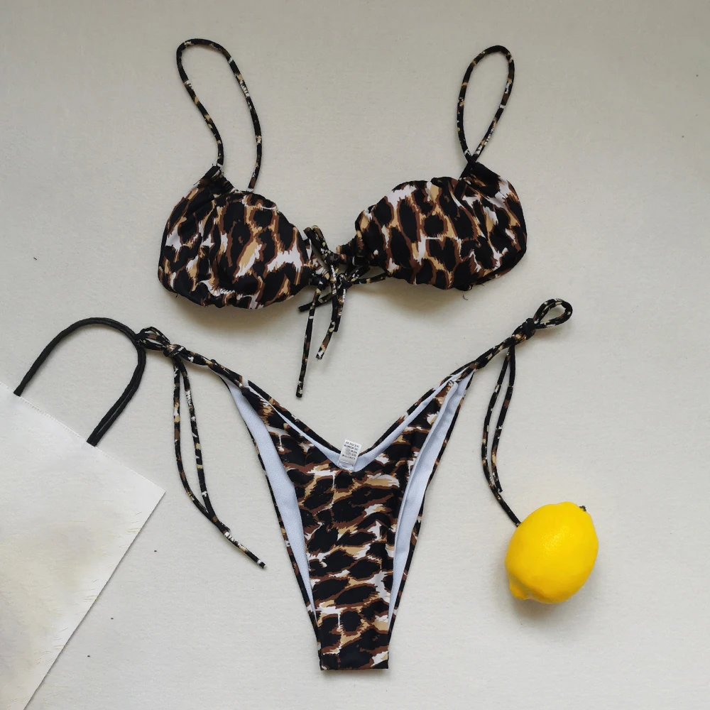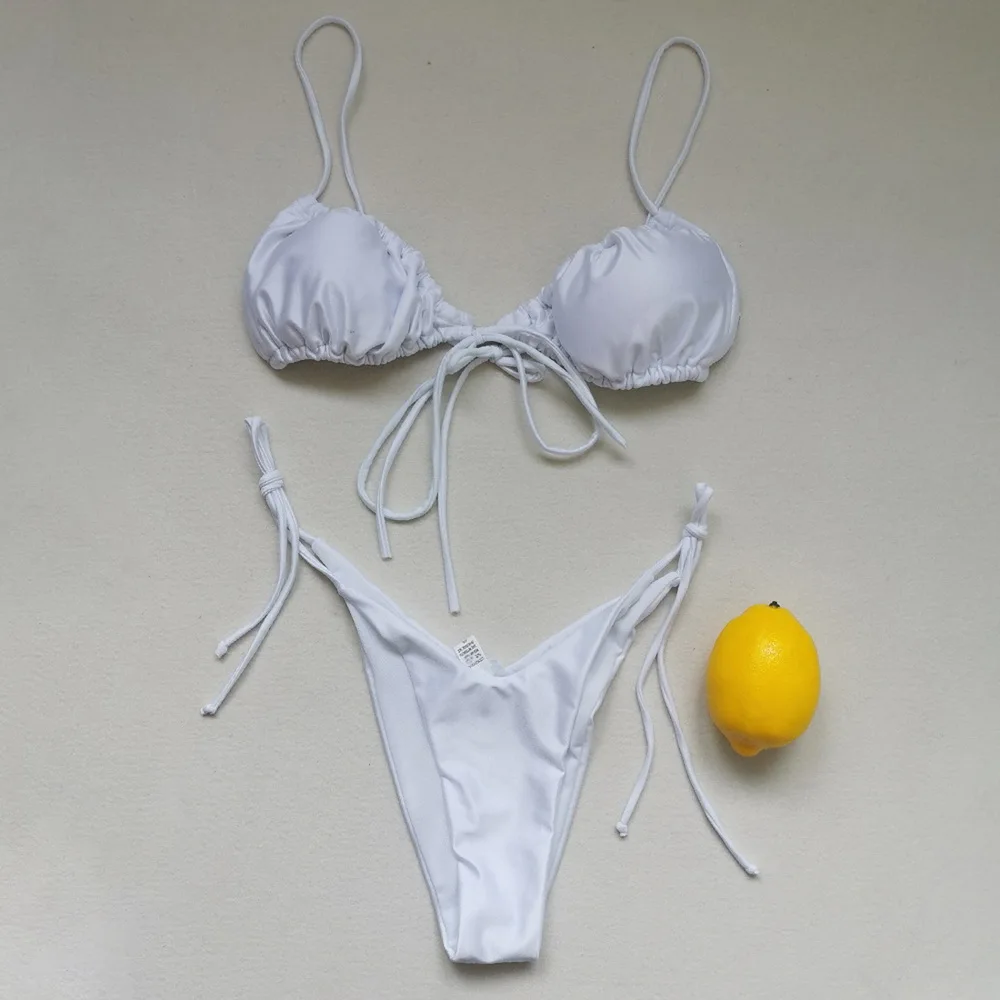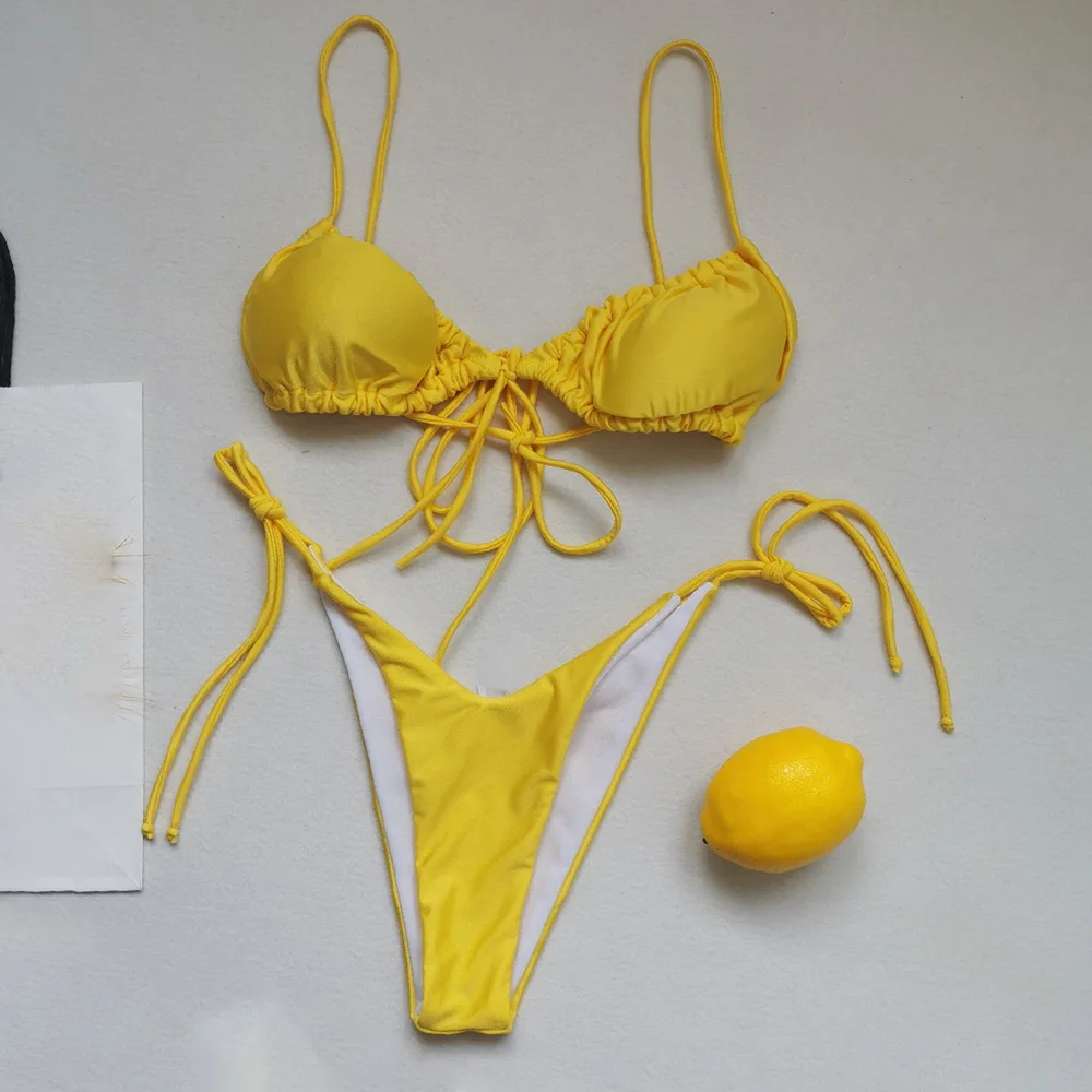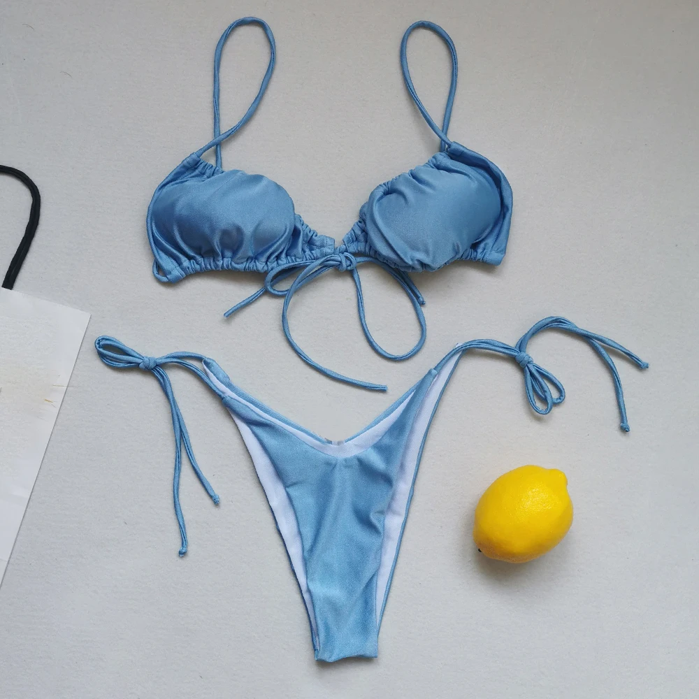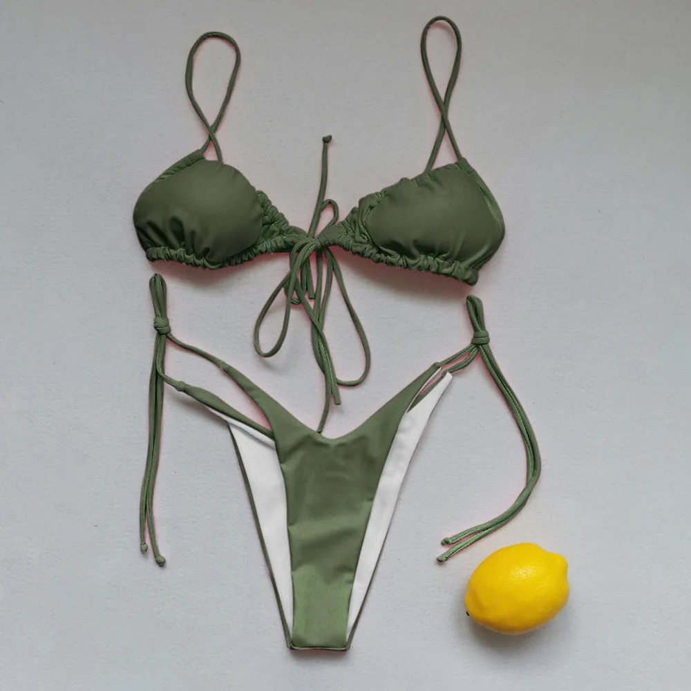 2021 женский плиссированный комплект бикини на шнуровке, сексуальные бикини, купальник с низкой талией, купальный костюм, летний купальник, женская пляжная одежда, бикини