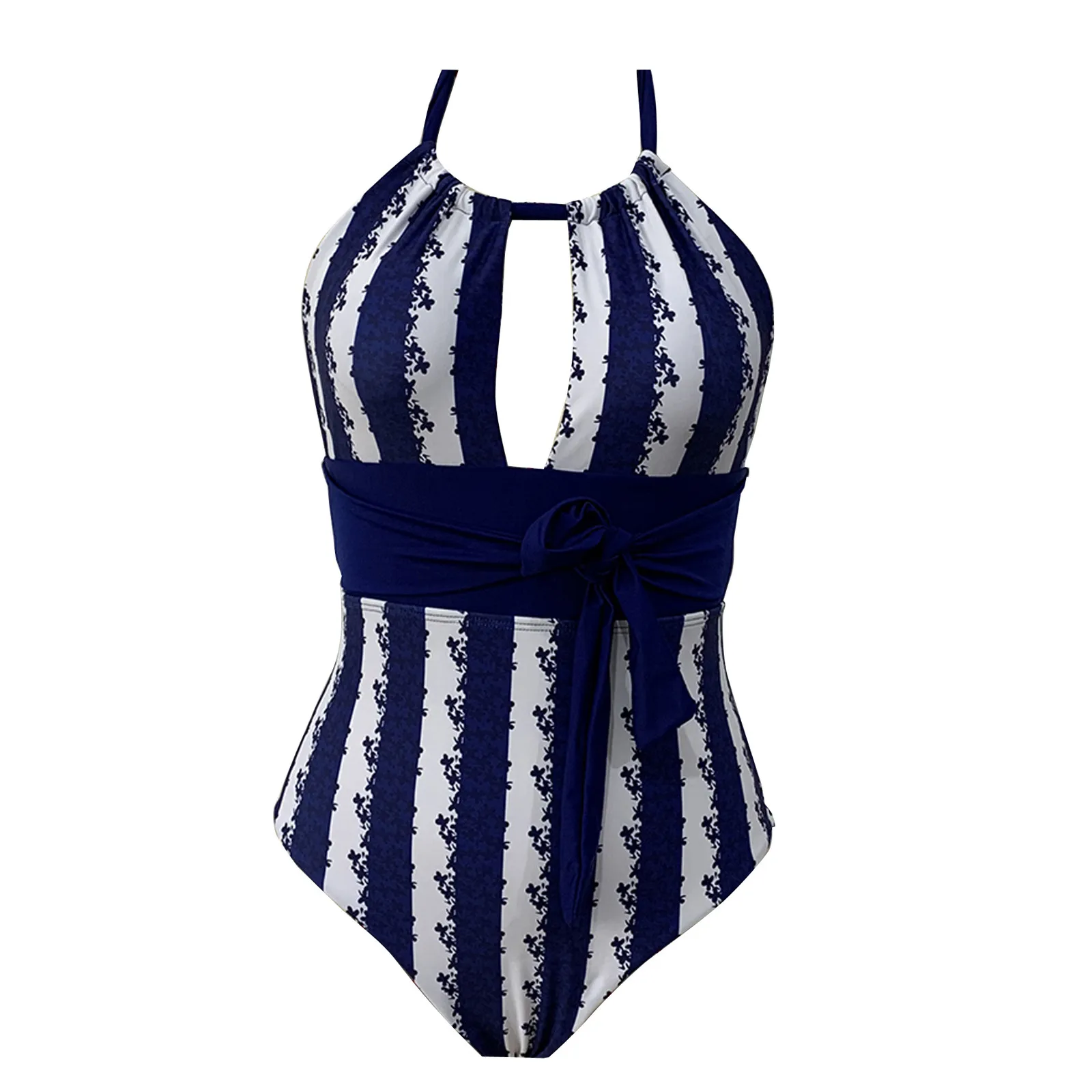 Цельный купальник, Женский бандо, бандажный комплект бикини, полосатый принт, v-образный вырез, пуш-ап, бразильский купальник, пляжная одежда, трикини
