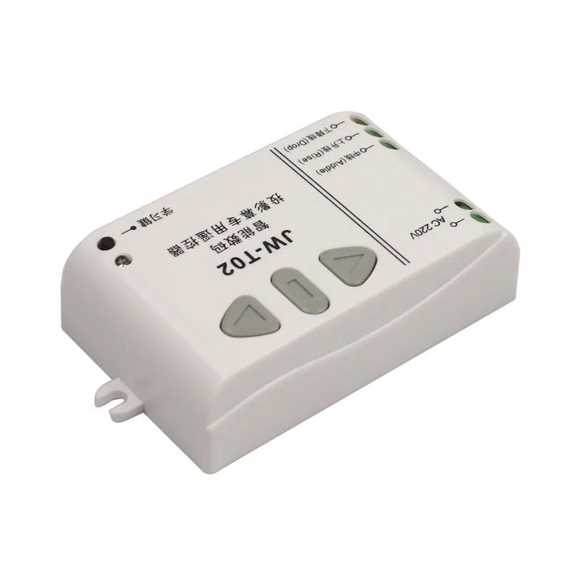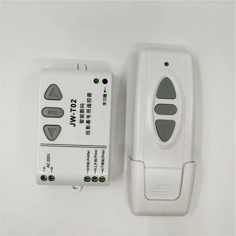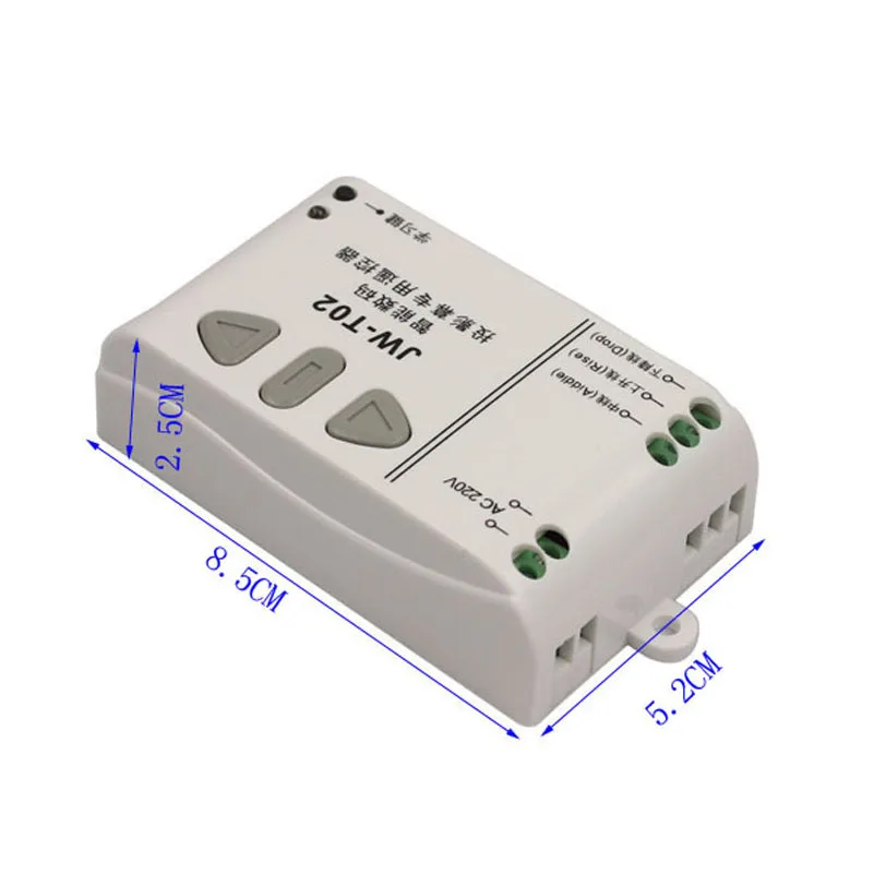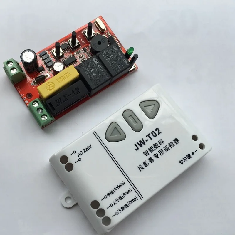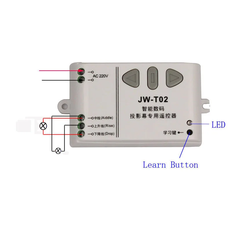Вход ac220в для приемника, нажмите кнопку настройки приемника, светодиодный индикатор мигает, затем нажмите кнопку передатчика, светодиодный индикатор выключен, это означает, что обучение успешно. При нажатии кнопки вверх Stop Down вы услышите звук реле.