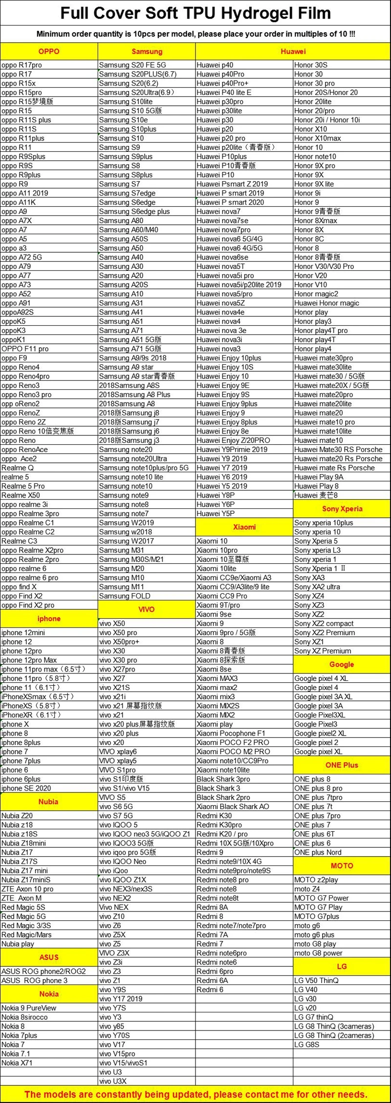 Model 18Clear Hydrogel Film Screen Protector For Galaxy Note 20