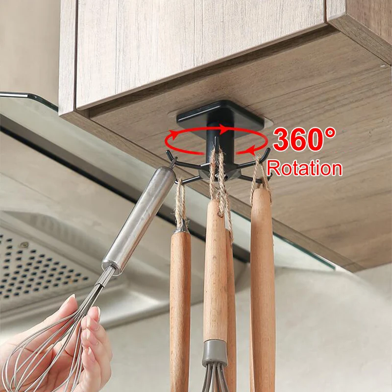 Вращающиеся на 360 градусов кухонные крючки самоклеющиеся многофункциональные крючки для кухонной утвари органайзер для хранения кухонной утвари
