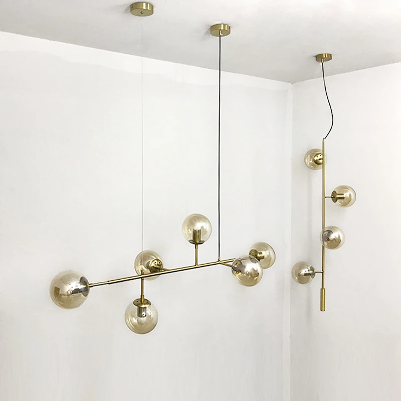 Винтажная латунная Люстра для гостиной, столовой, черное художественное украшение, минимализм, лампа для ресторана, дома, стеклянная лампа