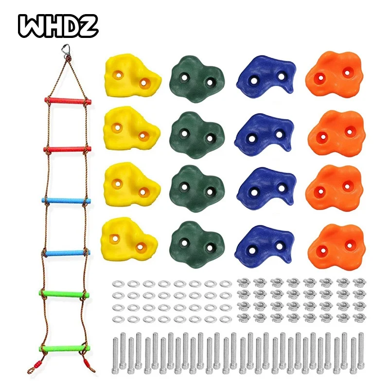 Набор для скалолазания сделай сам, 16 каменных настенных креплений для детей и детей, со скалолазающей веревкой, лестницей и 32 монтажными болтами