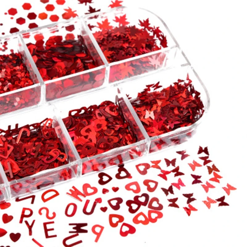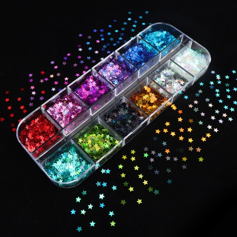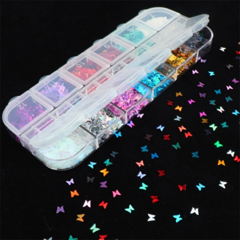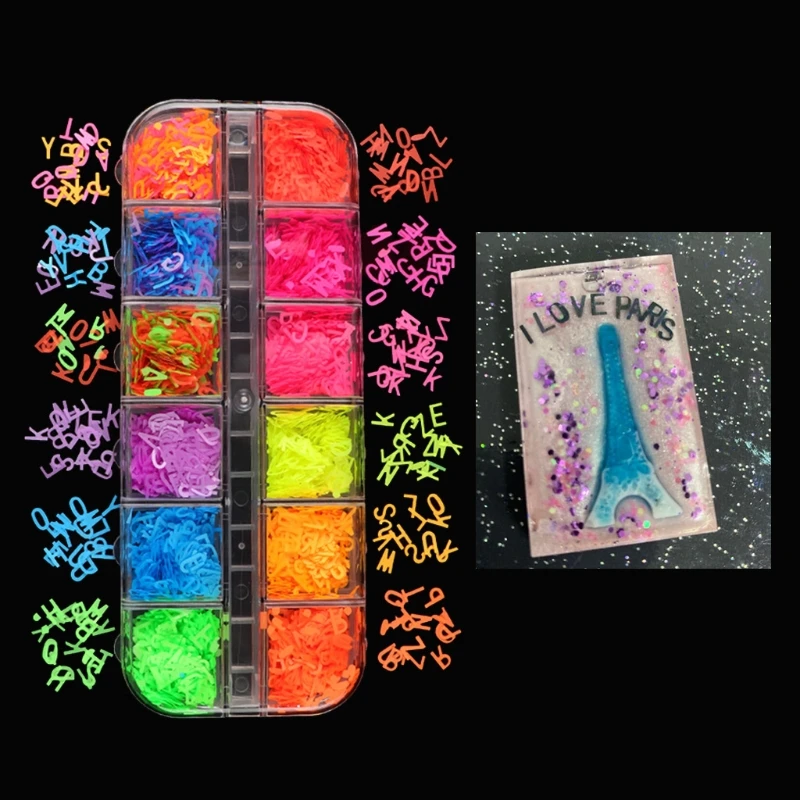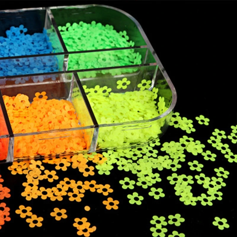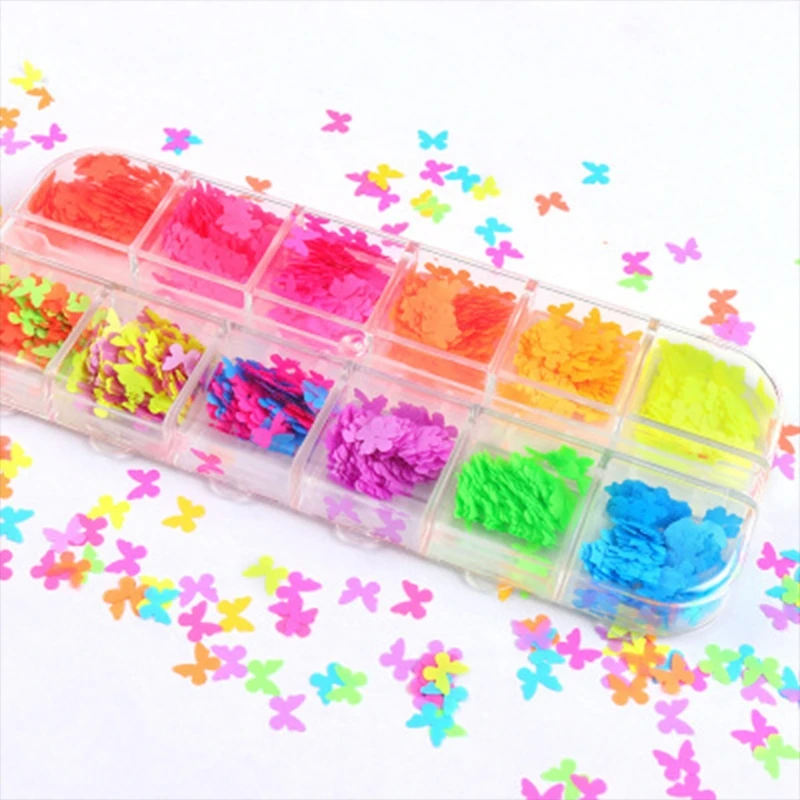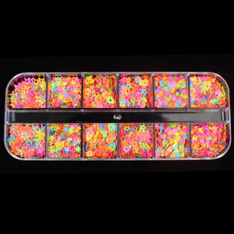 Флуоресцентные блестящие хлопья для дизайна ногтей, 12 ячееккоробка
