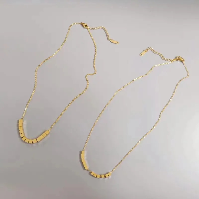 SUQI золотистый женский чокер из нержавеющей стали 316 без выцветания с квадратными бусинами и звездочками Ожерелья Подвески Женская цепочка Ювелирные изделия Kpop ошейник подарок