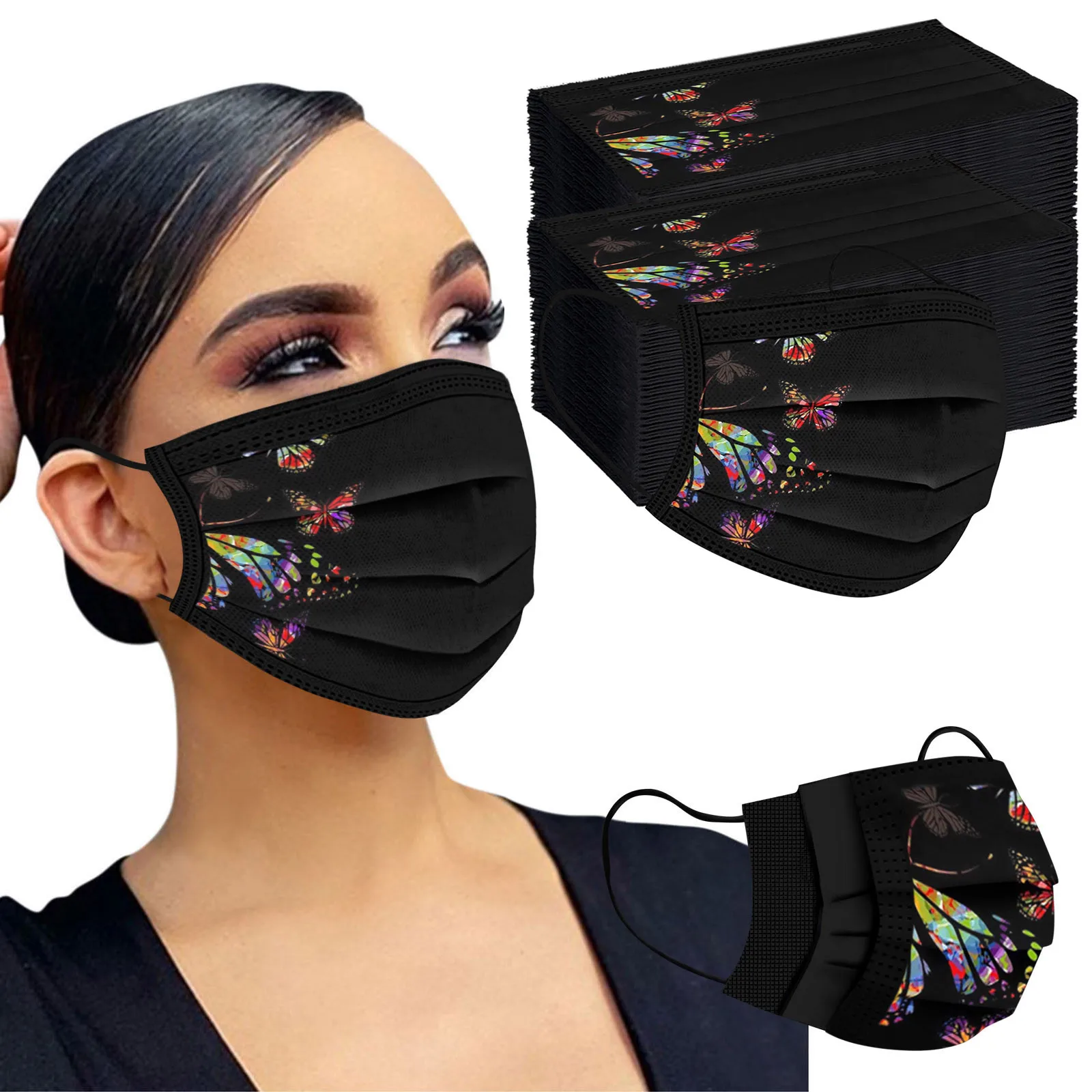 102050100 шт маска для лица для взрослых одноразовая маска для лица с изображением бабочек; Пыли 3Ply Петли Уха Унисекс Крышку Рот маска 2021