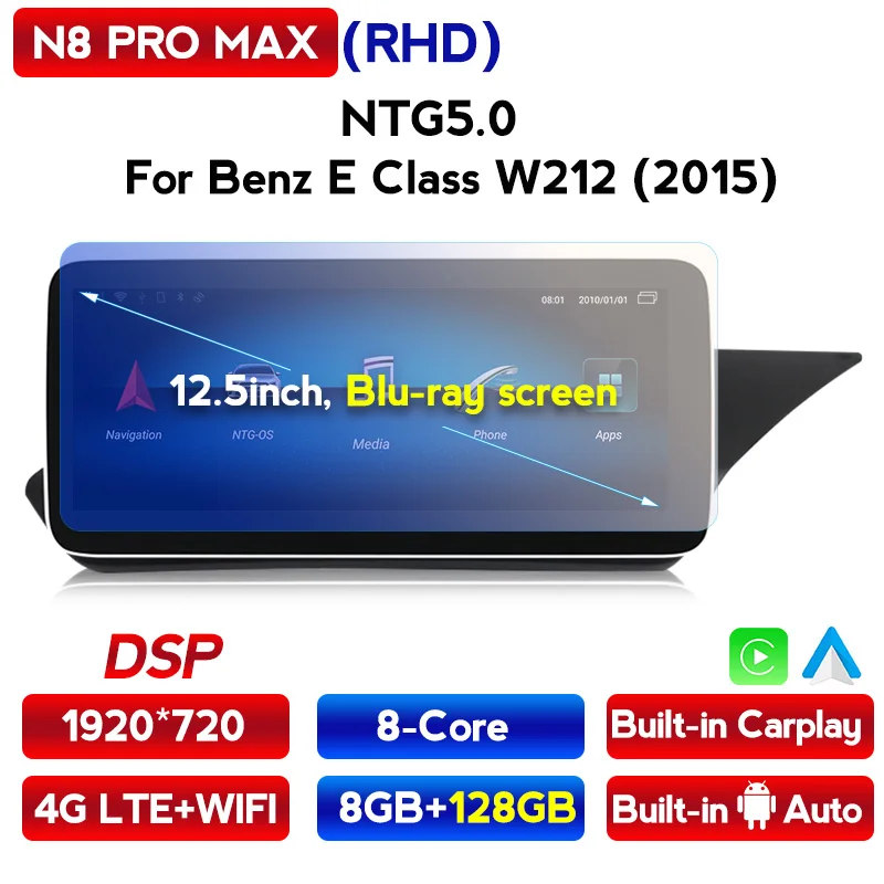 В наличии RHD 8 + 128G Android 10 встроенный CarPlay стерео автомобильный радиоприемник, мультимедийный плеер для Benz E Class W212 2015 NTG5.0 USB