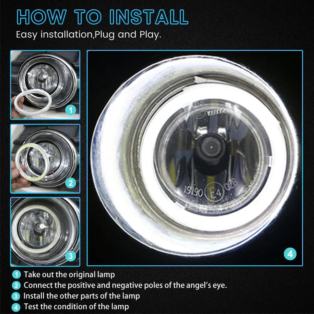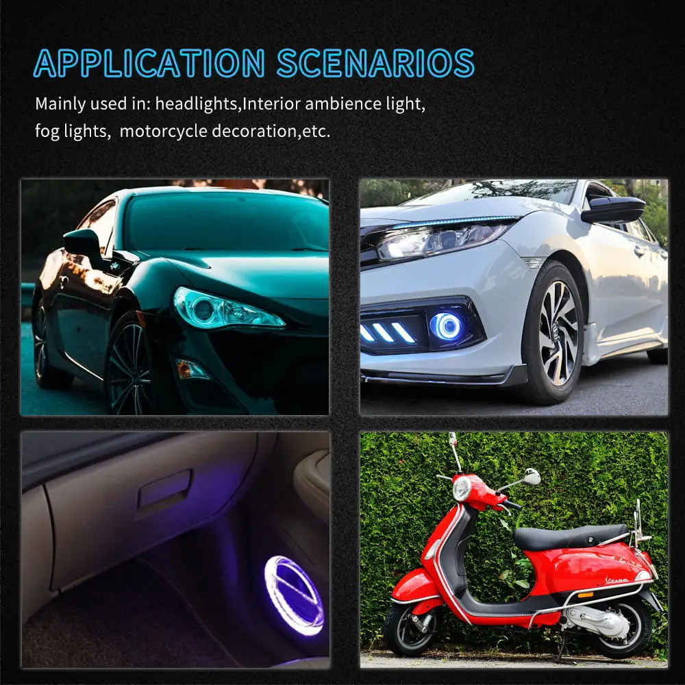 2X COB Angel Eyes 70 мм 7 см 9-30 в кольца с ореолом 3 м лента светодиодный ных фар автомобиля мотоцикла Противотуманные фары белый холодный синий красный зеленый желтый