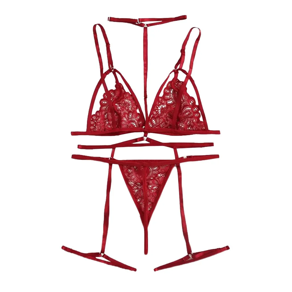 Женский сексуальный кружевной ажурный бюстгальтер, стринги, подвязки, комплекты из трех предметов, комплект нижнего белья, нижнее белье S-2XL