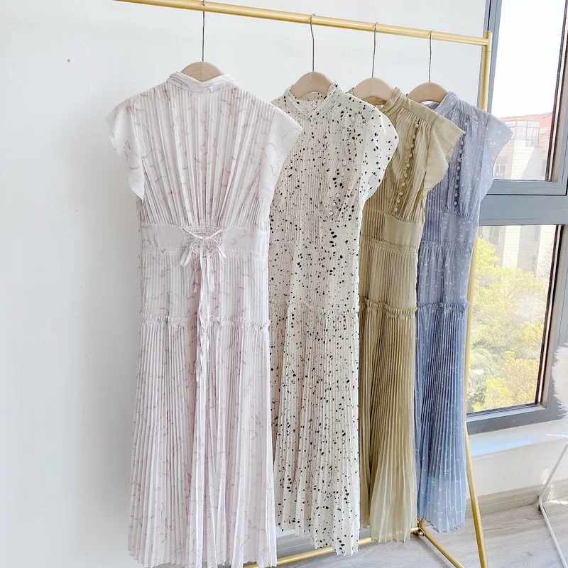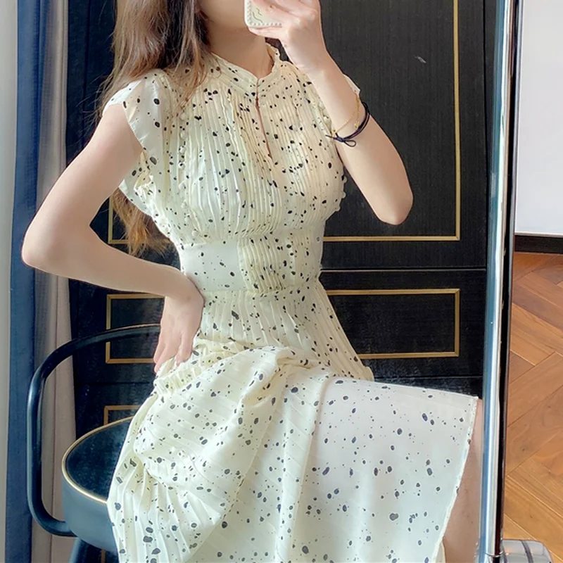 Женское плиссированное платье на завязках, элегантное ажурное платье с высокой талией и рюшами, лето