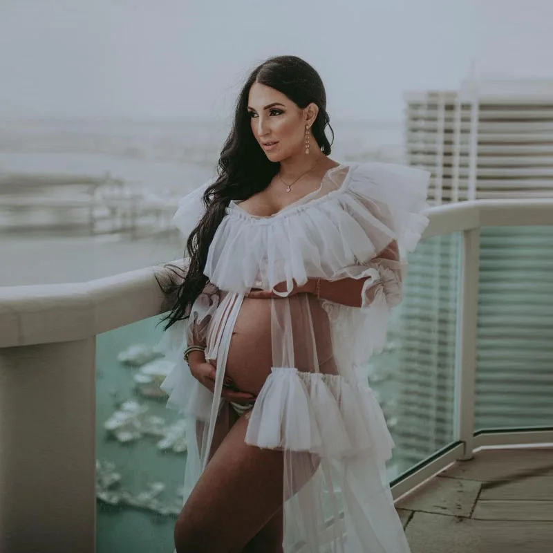 Белое Тюлевое платье для беременных летние прозрачные платья с длинным рукавом для беременных для фотосессии многоярусные простые тюлевые халаты