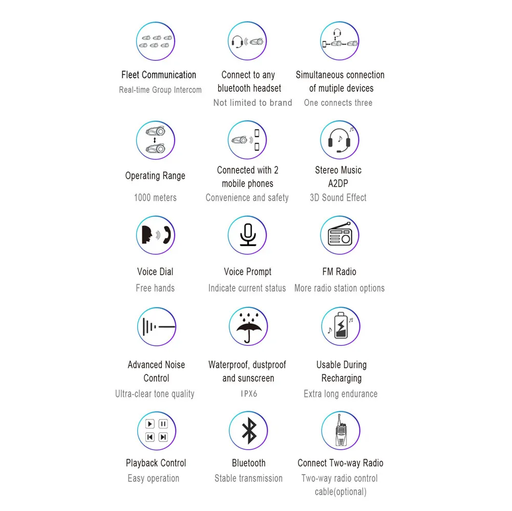 Мотоциклетная гарнитура M3 Moto 6 Riders, Bluetooth и Wi-Fi, ретран...