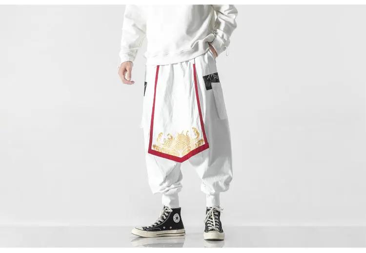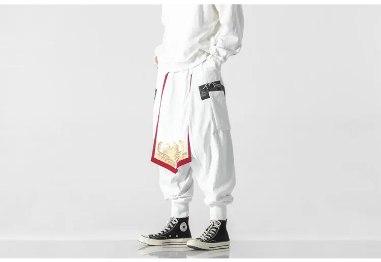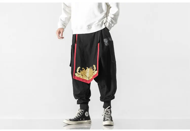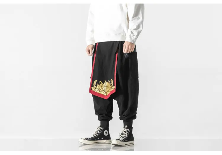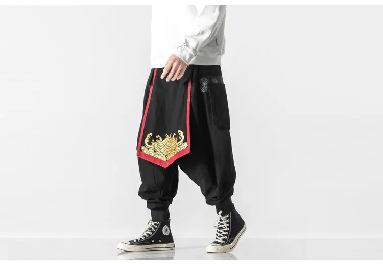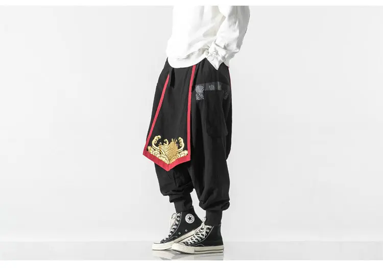 Брюки мужские с вышивкой, уличная одежда, свободные штаны для бега ...