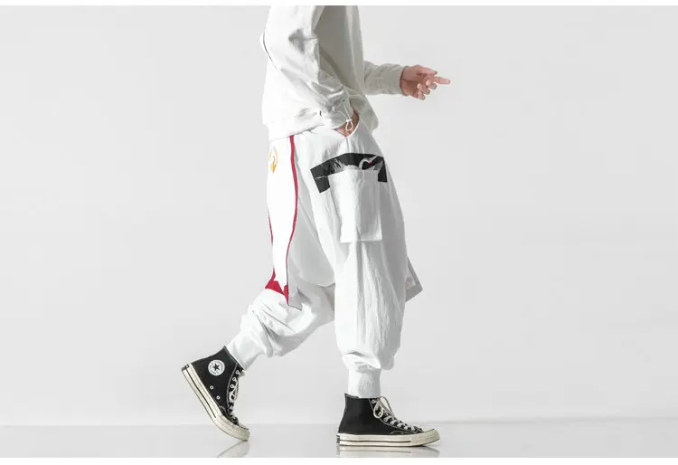 Уличная штаны с низкой мотней для мужчин в стиле Харадзюку; Повседн...