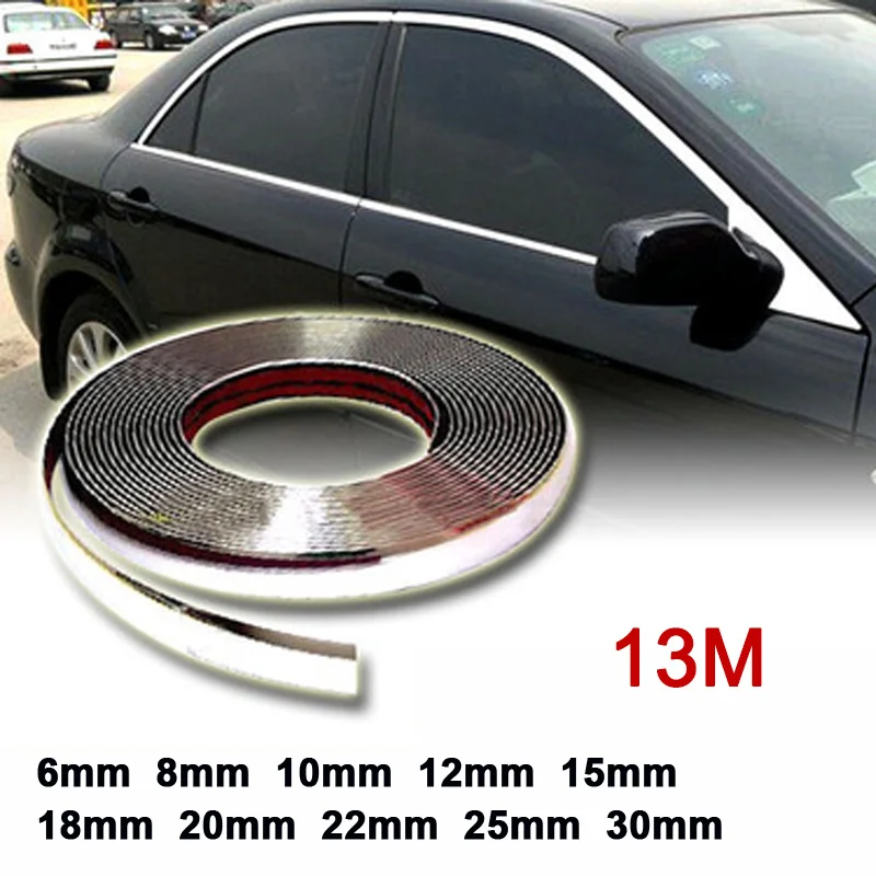 Серебристая Автомобильная хромированная декоративная формовочная лента для отделки 6 мм 8 мм 10 мм 12 мм 15 мм 20 мм 30 мм 13 м лента для Авто DIY защитные наклейки АВТОМОБИЛЬНАЯ ПОЛОСА защитная полоса декоративная пла