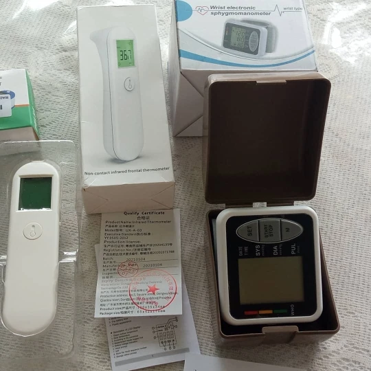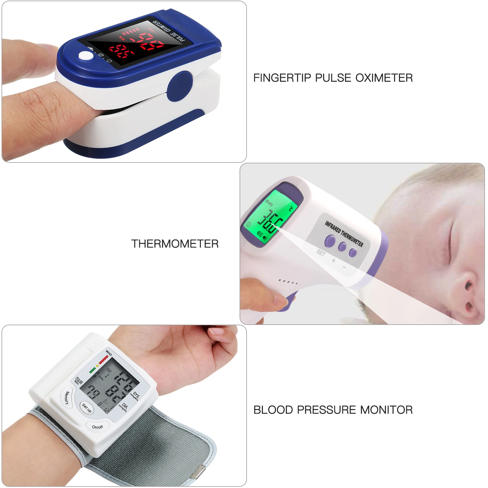 Особенности:Бесконтактный инфракрасный термометр подходит для всех возрастов, практичный и простой в использовании.Компактный дизайн, одно нажатие для переключения режима измерения.Большой ЖК-экран, мгновенное и четкое чтение.Три цвета светодиода подсветки дисплея, можно использовать в ночное время.Цифровой Пульсоксиметр может использоваться для измерения частоты пульса, уровня насыщения крови кислородом.Легко использовать, Просто прикрепите его к пальцу и включите его при нажатии кнопки.Компактный и легкий, легко носить с собой.Широко используется в семье, кислородном баре, физическом уходе в спорте и т. д.Монитор артериального давления может точно и быстро измерять кровяное давление.С большим ЖК-экраном, четким и легким для пожилых людей в использовании.Высокие и низкие показатели частоты пульса. Предупреждение сердце мигалка свидетельствует о том, что монитор для измерения.Модель запястья, простое управление, измерение одним щелчком, простота в использовании.Манжета большого размера почти подходит всем людям независимо от того, тонкий или сильный.Характеристики:Название: электронный термометрМатериал: АБС-пластик + ПоликарбонатМощность: 2 * AAA 1,5 V щелочной аккумулятор (не входят в комплект)Диапазон измерений: 35 ℃-42 ℃ ± 0,2 ℃Расстояние измерения: 30 мм-50 ммАвтоматическое выключение: 15sНормальные Условия работы:Рабочая температура: 16 ℃-35 ℃Рабочая Относительная влажность: <85%Атмосферное давление: 70kpa-106kpaРассеивание мощности <450 МВтРазмер изделия: 150*95*45 мм/5,91*3,74 * 1.77inВес изделия: 103 г/3,63 унцийРазмер посылка: 185*115*53 мм/7,28*4,53 * 2.09inПосылка Вес: 143 г/5,04 унции