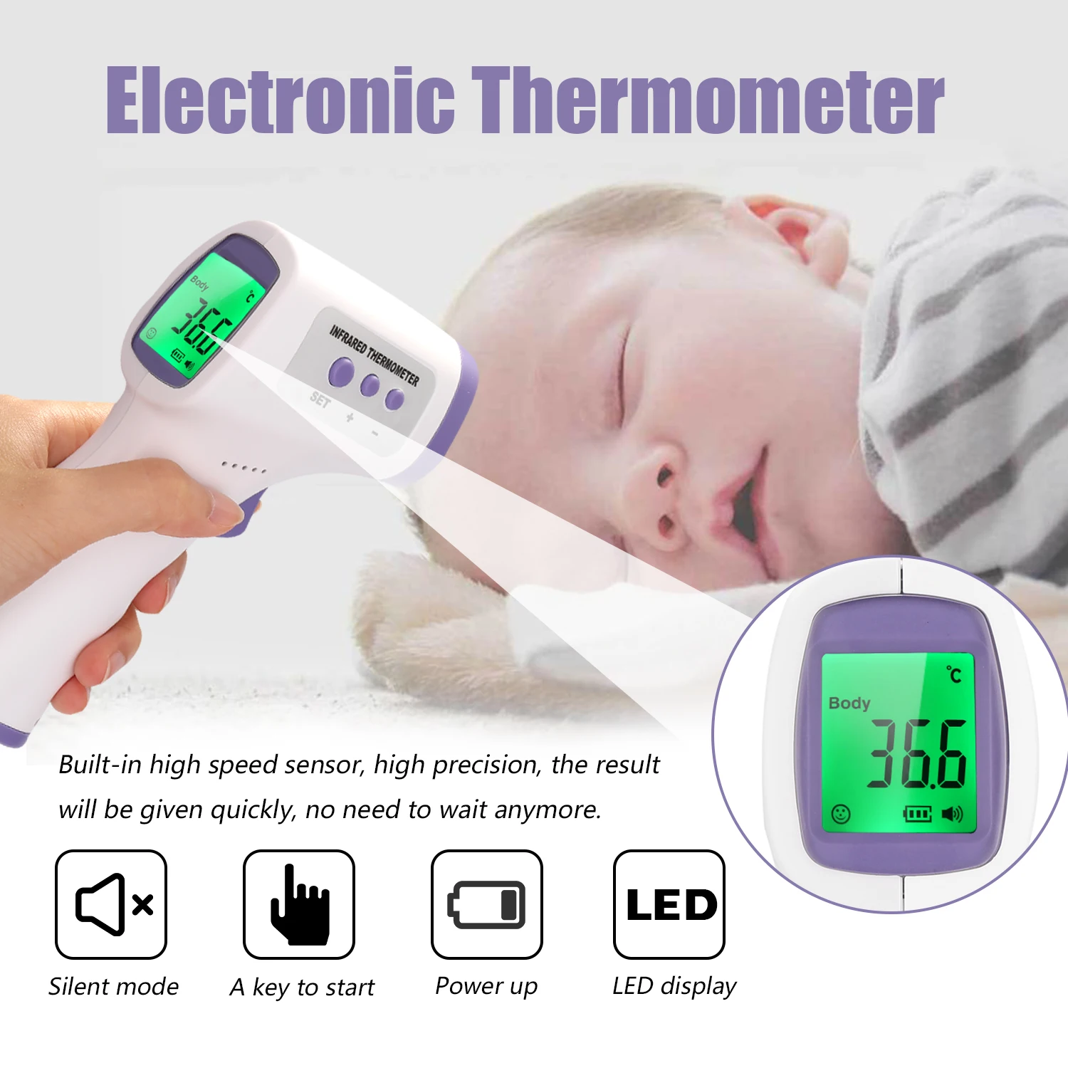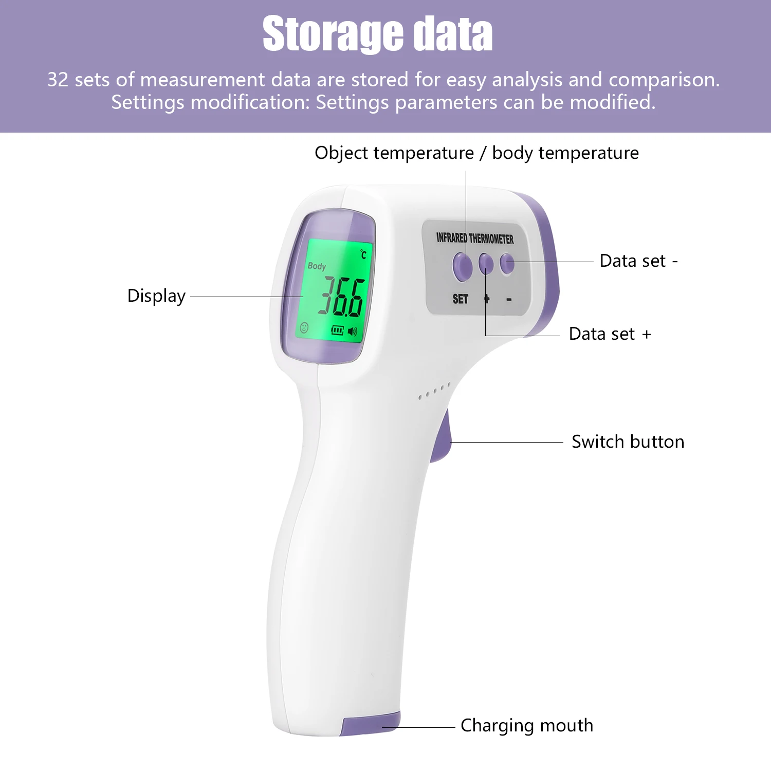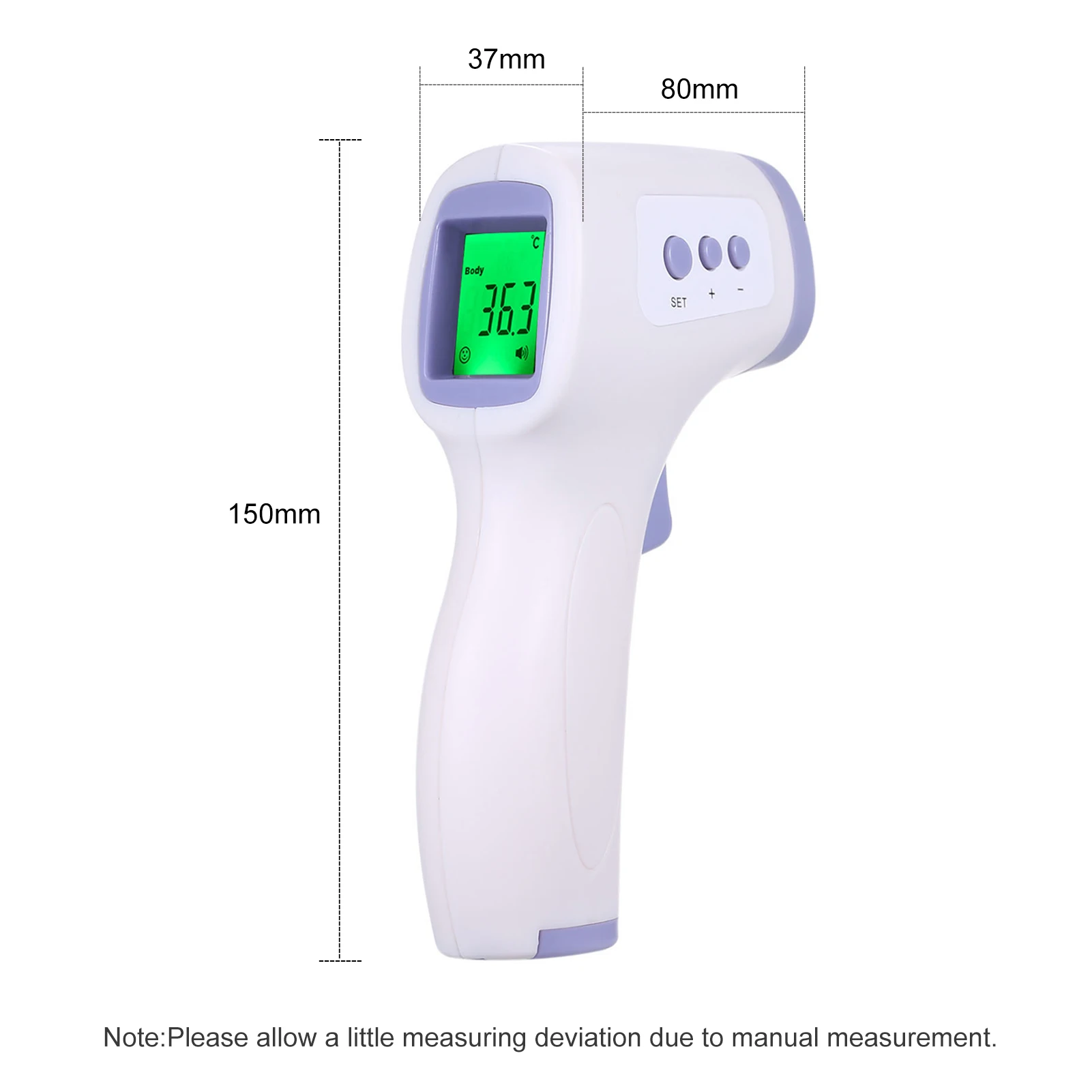 Особенности:Бесконтактное инфракрасное измерение, безопасно для использования.Легкий и портативный, удобно носить с собой.Одна кнопка для переключения режима измерения, короткое нажатие кнопки «Set» может переключаться между «режимом температуры тела» и «режимом температуры объекта».Направляя к лбу на расстоянии 10-30 мм.Автоматическое хранение 32 наборов данных измерений, вы можете просмотреть данные предыдущих измерений.Три цвета светодиода подсветки дисплея, можно использовать в ночное время.Одно второе измерение, стабильное использование и надежное качество.Характеристики:Тип изделия: термометрЦвет: фиолетовыйМатериал: АБС-пластикТочность (Body): в пределах от 35 ℃-42 ℃, ± 0,2 ℃Вне диапазона от 35 ℃-42 ℃, ± 0,3 ℃Точность (поверхность): 32-42,9 ℃ (Температура режим) ± 0,2 ℃Расстояние измерения: 10-30 ммПоложение измерения: Центр лбаВремя отклика: ≤ 2 секундыАвтоматическое выключение-время: 15 ± 5 сD C 3V (2*1,5 V AAA батареи (не входит в комплект)Рабочее состояние: 10-35 ℃, 20%-85% RH или менее, 760 HPA-1060 HPAТрихроматическая Подсветка: 32 ℃ ~ 37,2 ℃ зеленый37,3 ℃ ~ 38 ℃ желтый38,1 ℃ ~ 42,9 ℃ красный (только триколор издание)Размер посылка: 165*110*50 мм/6,49*4,33*1,96 дюймовВес посылка: 120 г/4,23 унцийПримечание:1. Чтобы получить более точное числовое значение, рекомендуется измерить температуру лба как можно больше.2. Есть два стиля продукта. Стиль будет отправлен случайным образом. Пожалуйста, поймите, спасибо.Упаковочный лист:1 * термометр1 * Руководство пользователя