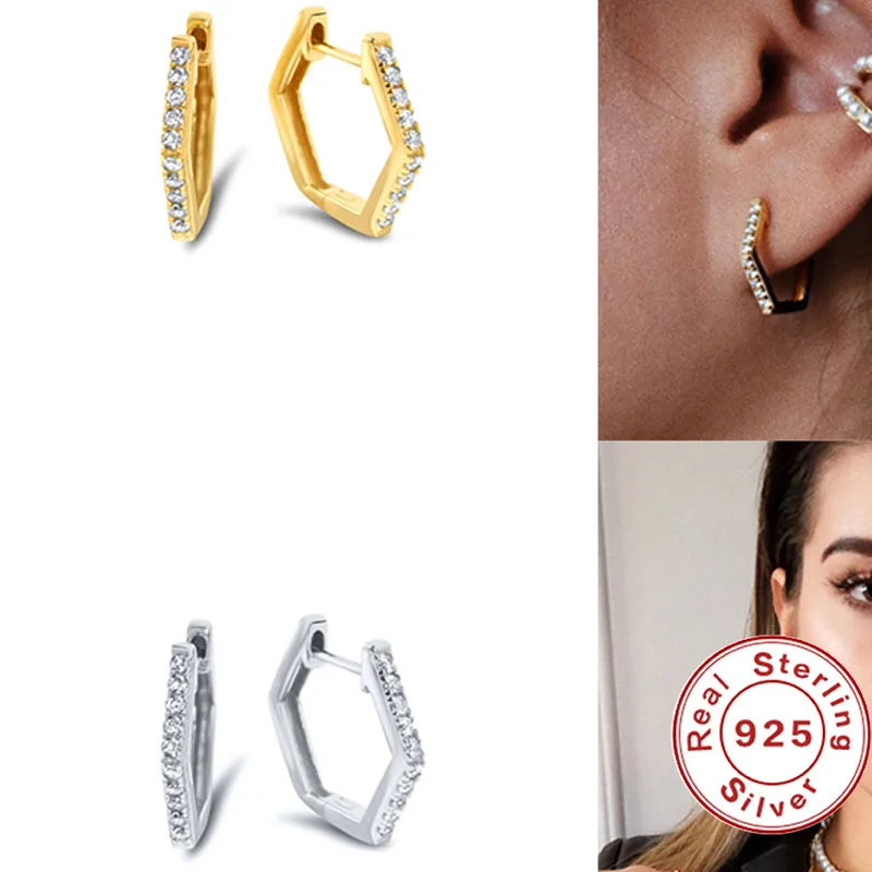 Автоклав 1 пара 2021 модные серьги-кольца для женщин 925 стерлингового серебра пирсинг с шестигранной головкой циркон женские серьги для женщин, ювелирные изделия для вечерние