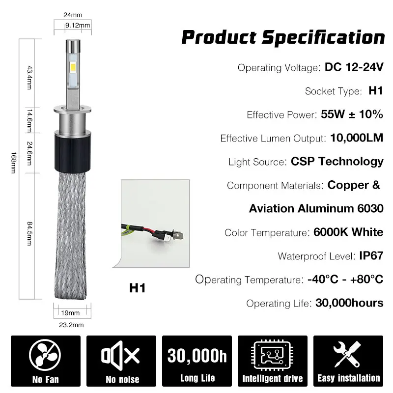 Лампы светодиодные H1, 2,5 дюйма, для автомобиля, мотоцикла, автомо...