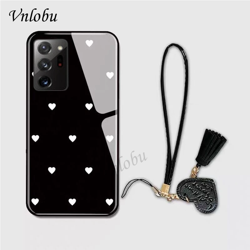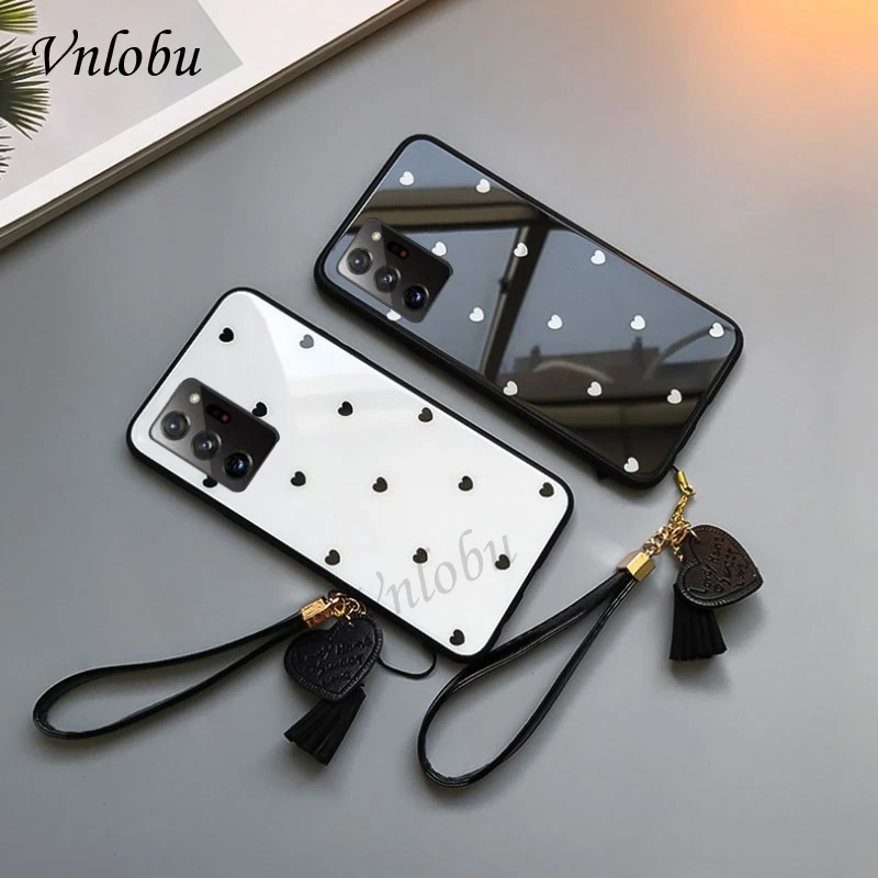 Чехол для Samsung Note 20 Ultra с сердечком, закаленное стекло, чехол для телефона Samsung S10E S9 S8 Plus, ударопрочный задний Чехол, шнурок с кисточками