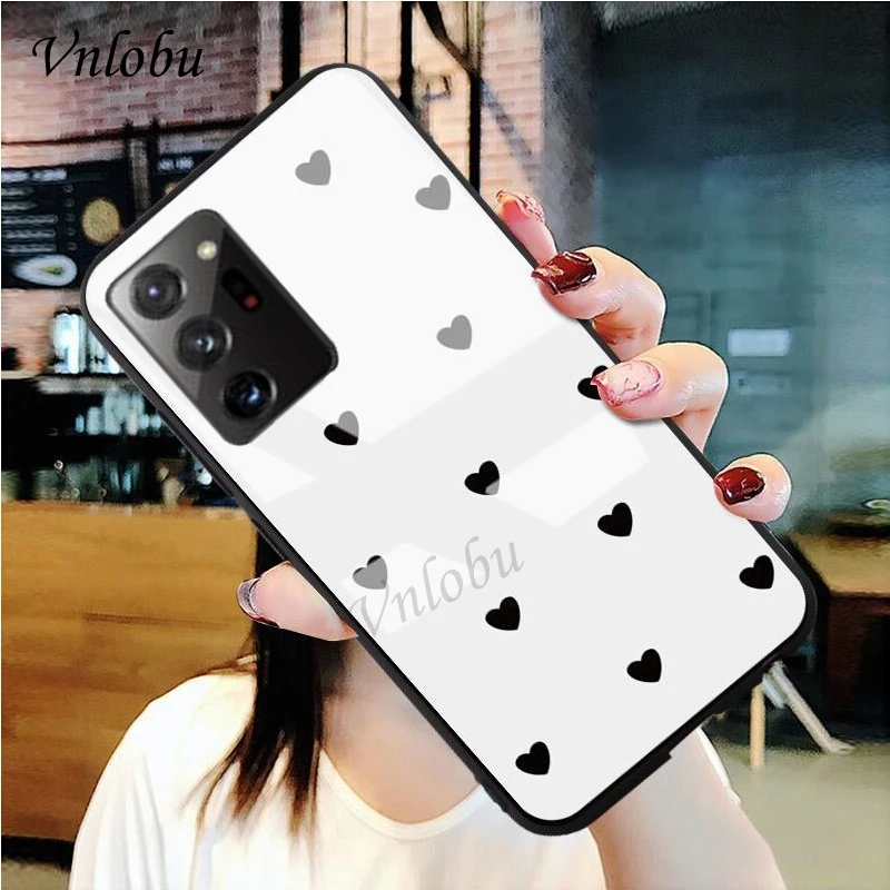 Чехол-накладка для Samsung Note 20 Ultra, закаленное стекло, с сердечками, противоударный