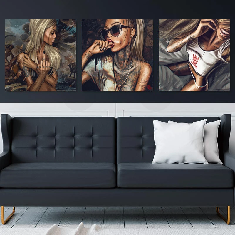 Крутая сексуальная девушка тату поп граффити уличный Секс Женщины картина маслом холст плакаты печать Куадрос стены искусство картины для гостиной
