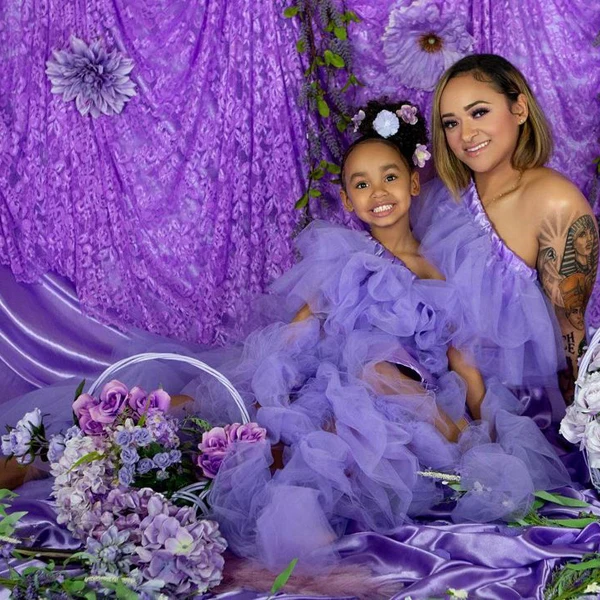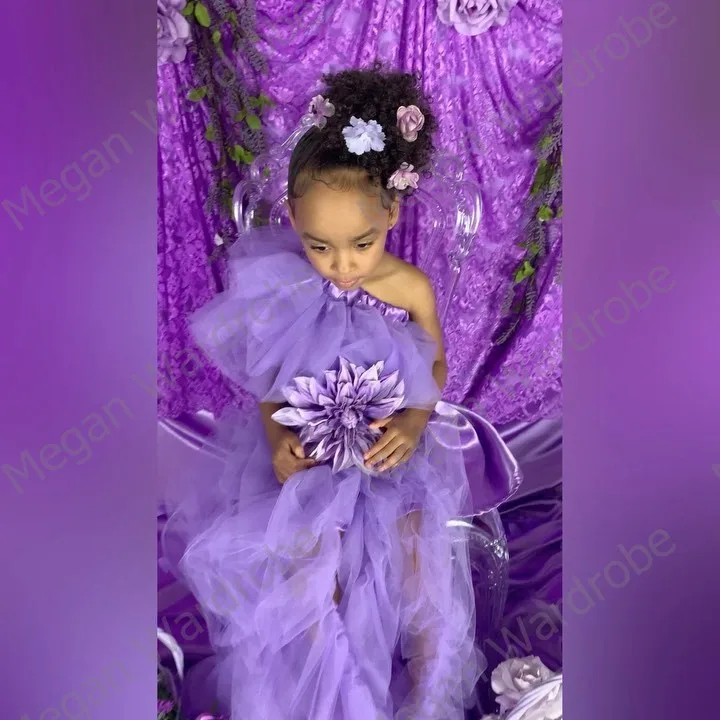 Красивые тюлевые платья лавандового цвета с оборками в несколько рядов одежда для мам и я эластичная длинная пачка на одно плечо Повседневное платье для дня рождения для девочек