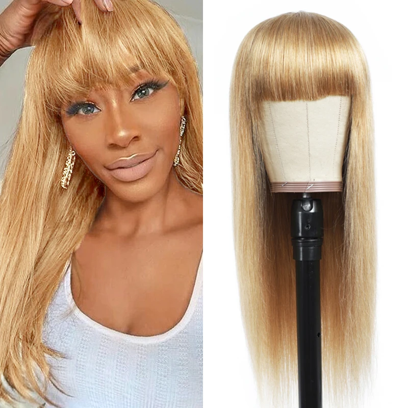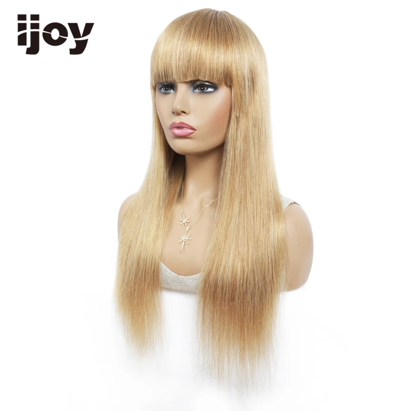 Парик из натуральных волос с челкой, прямые волосы, цветной медовый блонд, бразильские волосы, полностью машинные парики для чернокожих женщин, не Реми IJOY