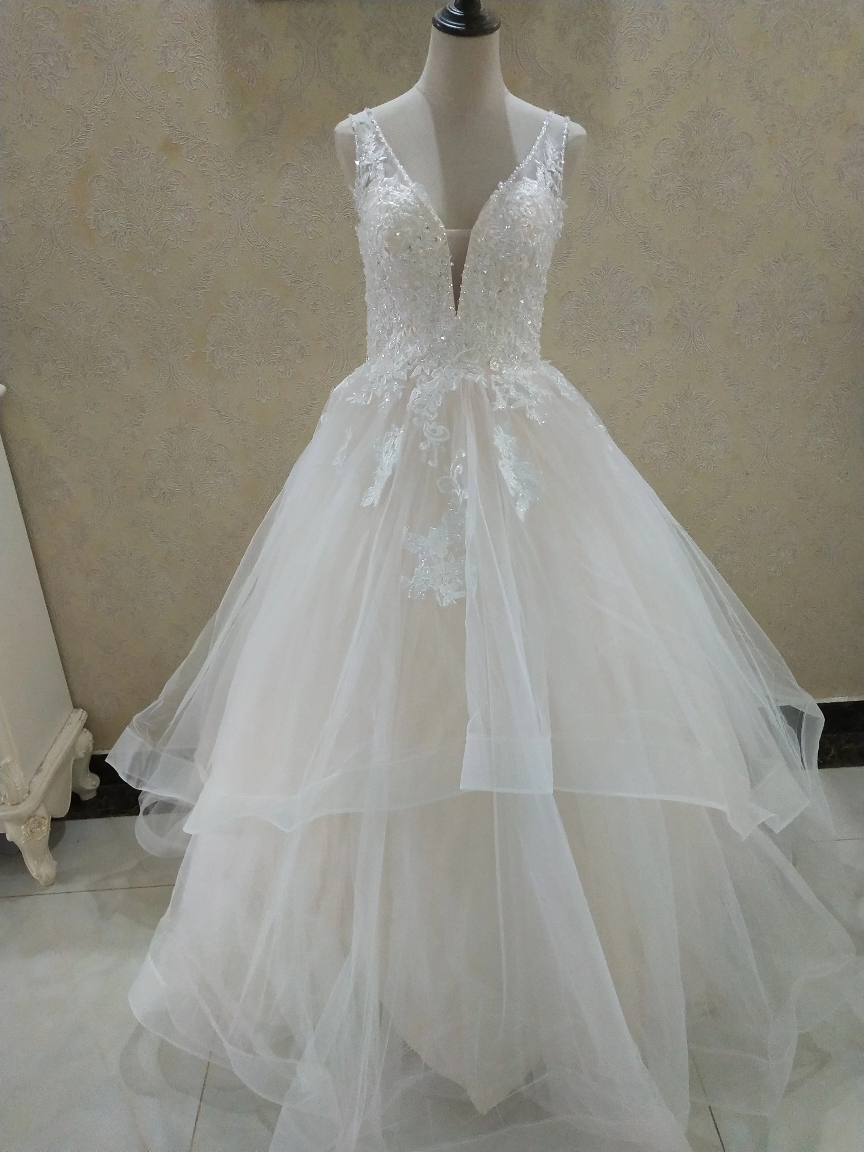 Кружевное многослойное свадебное платье, с открытой спиной, глубоким V-образным вырезом, ZJ9204, 2020, 2021