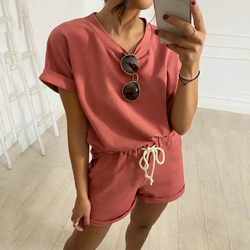 Женский пижамный комплект из двух предметов, повседневный однотонны...