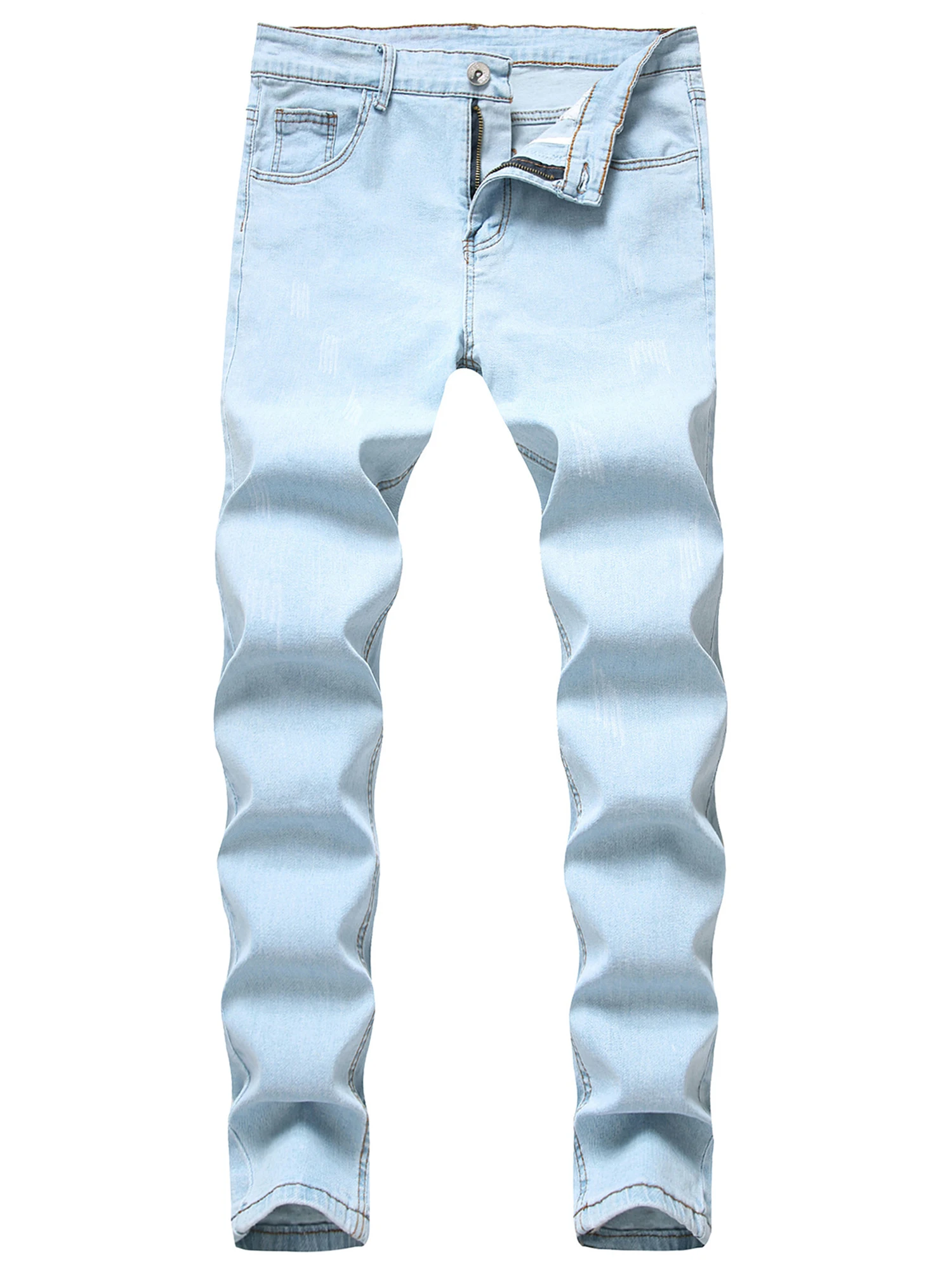 Новые мужские повседневные однотонные облегающие эластичные мотоциклетные джинсы, повседневные облегающие брюки со средней талией и карманами, потертые джинсовые длинные брюки