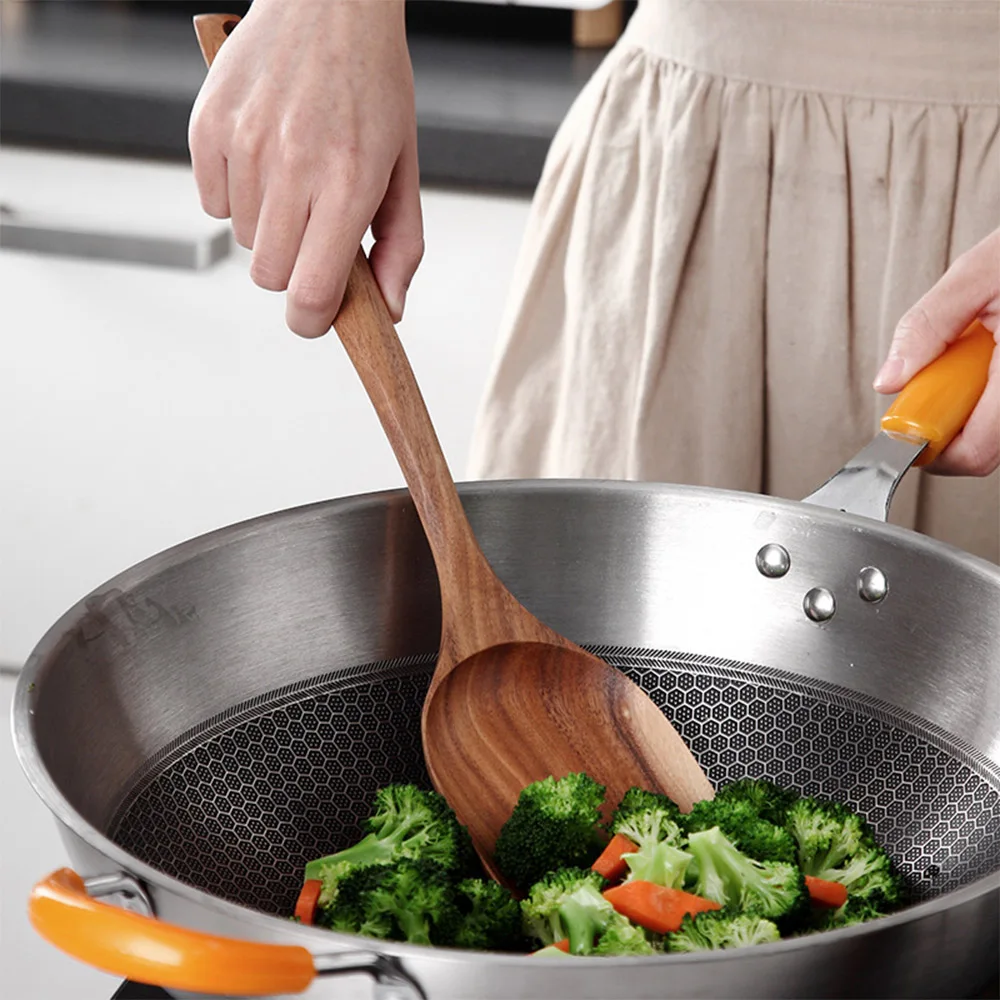 Кастрюля из тикового дерева с антипригарным покрытием, лопатка длин...