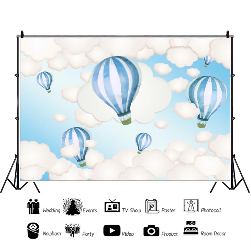 Красивый голубой фон серии воздушных шаров для фотосъемки на день рождения мальчика украшение для фотостудии 3D цифровой Фон Ткань