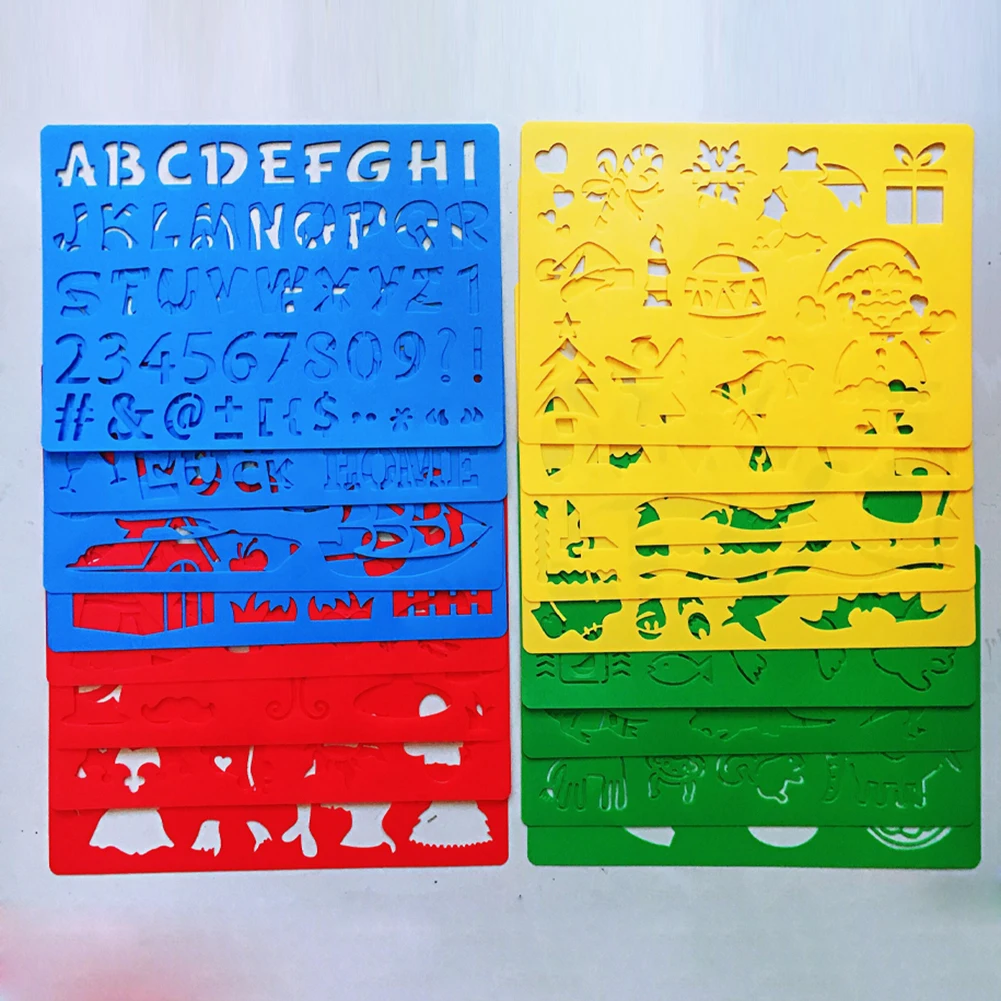 20 шт., дети, забавный рисунок шаблон игрушка трафарет линейка для творчества DIY рисовать, обучающие игрушки для детей, пластиковые чехлы с рисунком шаблон