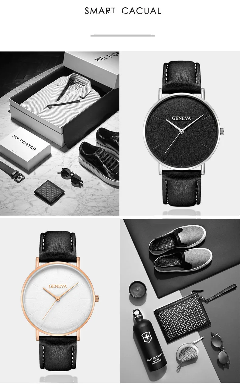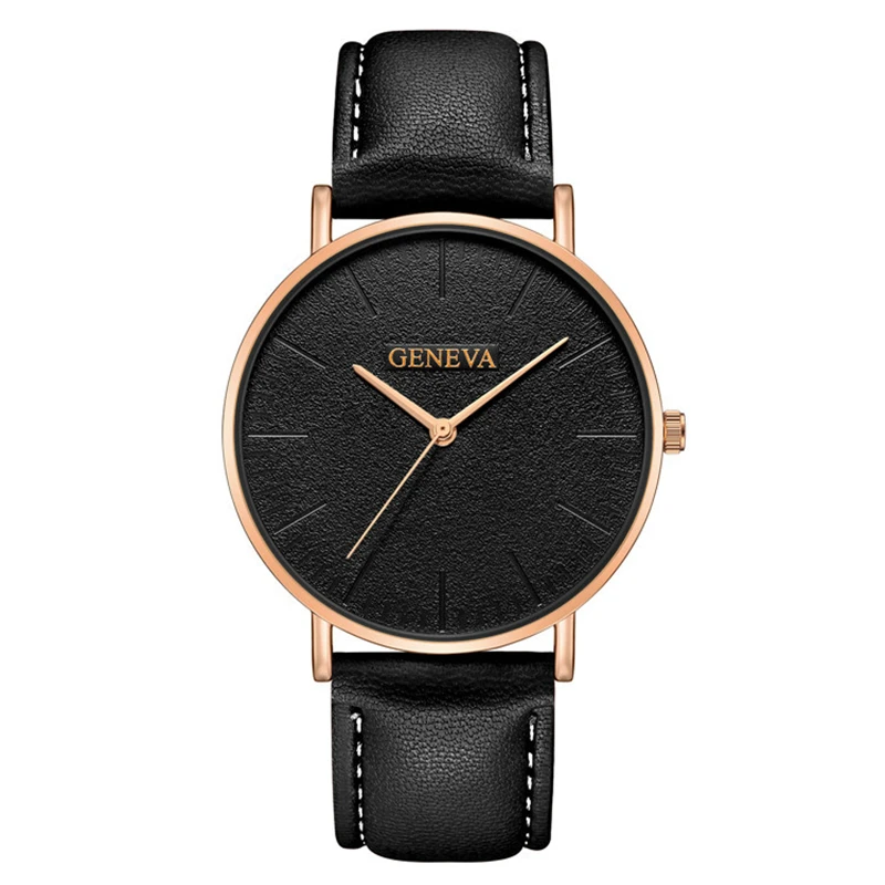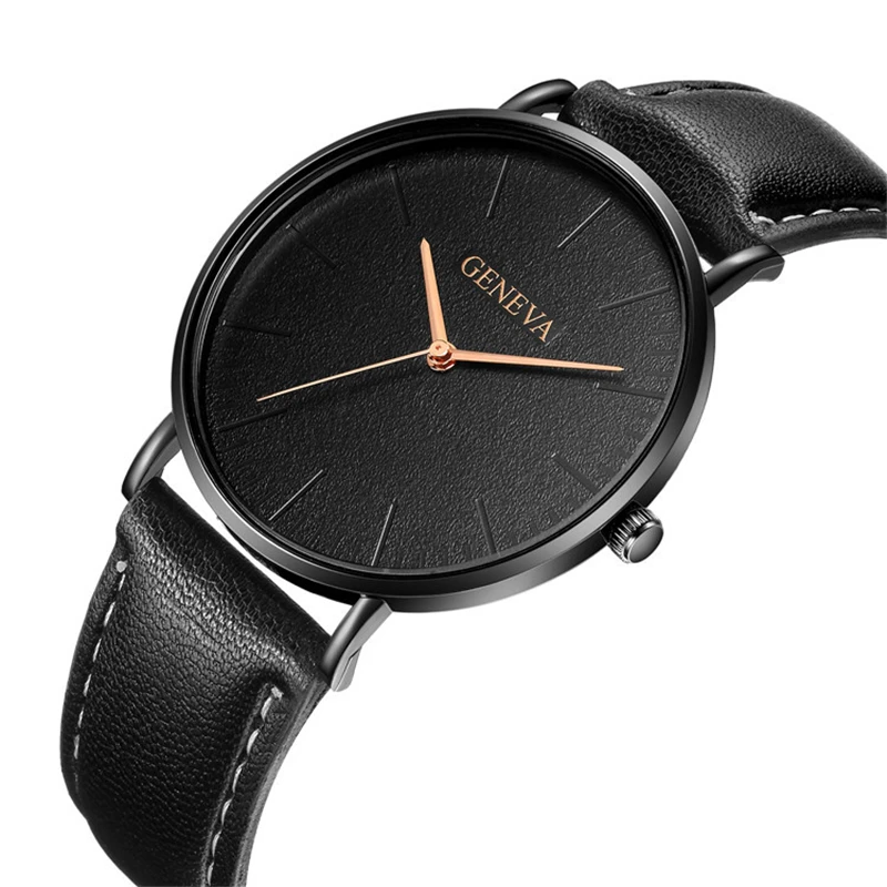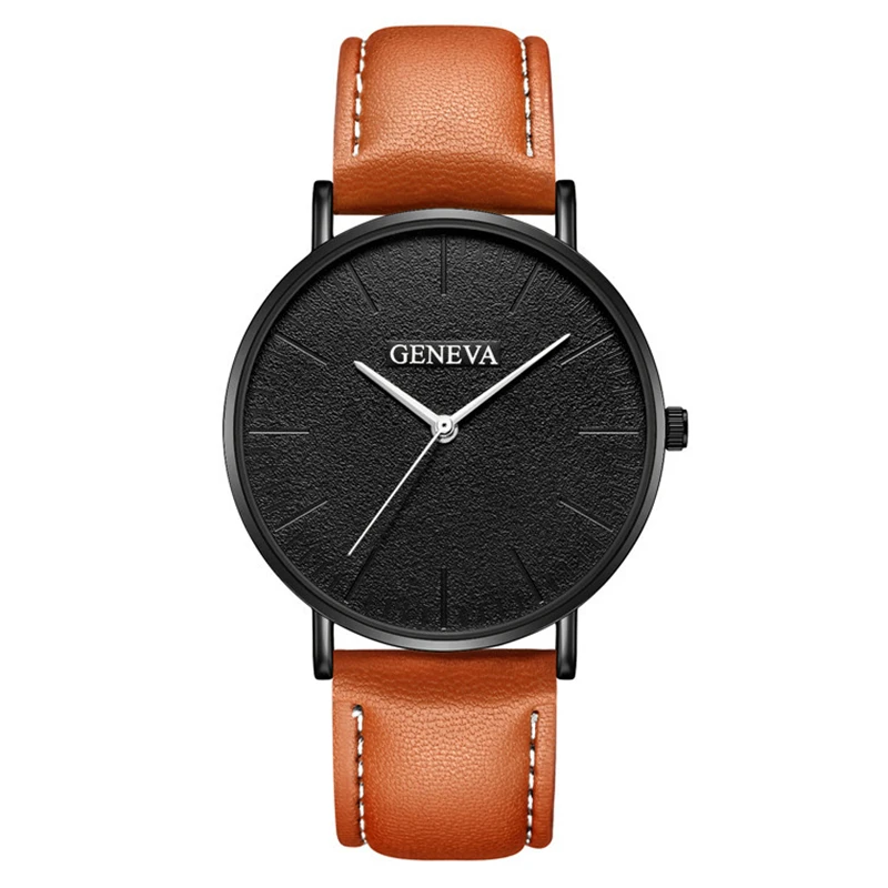 Мужские коричневые минималистичные часы, новый простой стиль, Женева, роскошные мужские кварцевые часы, кожаный ремешок для часов, повседневные часы