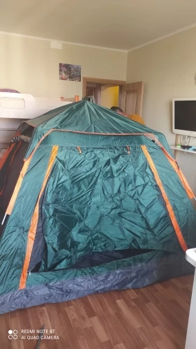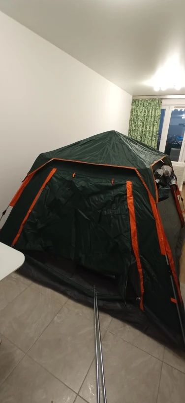 палатка понравилась.большая, разборка и сборка быстрые.ЕСТЬ несколько касячков в виде растянутых швов(1шт),и микро дырочек(5шт),но думаю вылечу(будте готовы к таким мелким косячкам при покупке, чтобы потом не ныть)пол тонковат,но это ерунда(ребенок проверил пытаясь его порвать всеми ему доступными способами) ВООБЩЕМ палатка очень понравилось,и доставка СУПЕР 5 дней DPD.дожь,и ветер покажут кака это палатка на самом деле.через 20 дней отпешусь