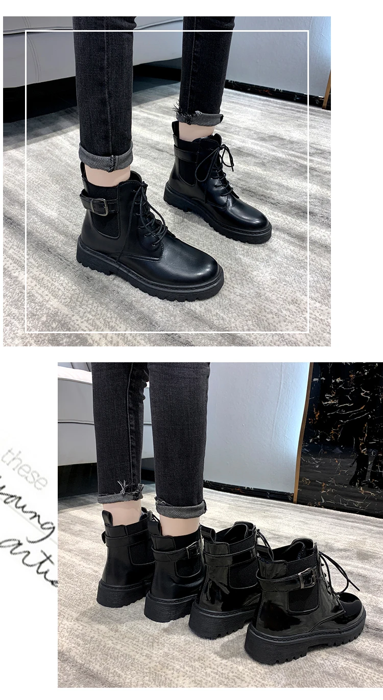 Короткие женские ботинки в британском стиле, Новинка весна-осень, рыцарские ботинки, черные, универсальная повседневная женская обувь